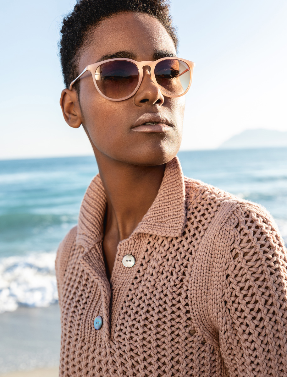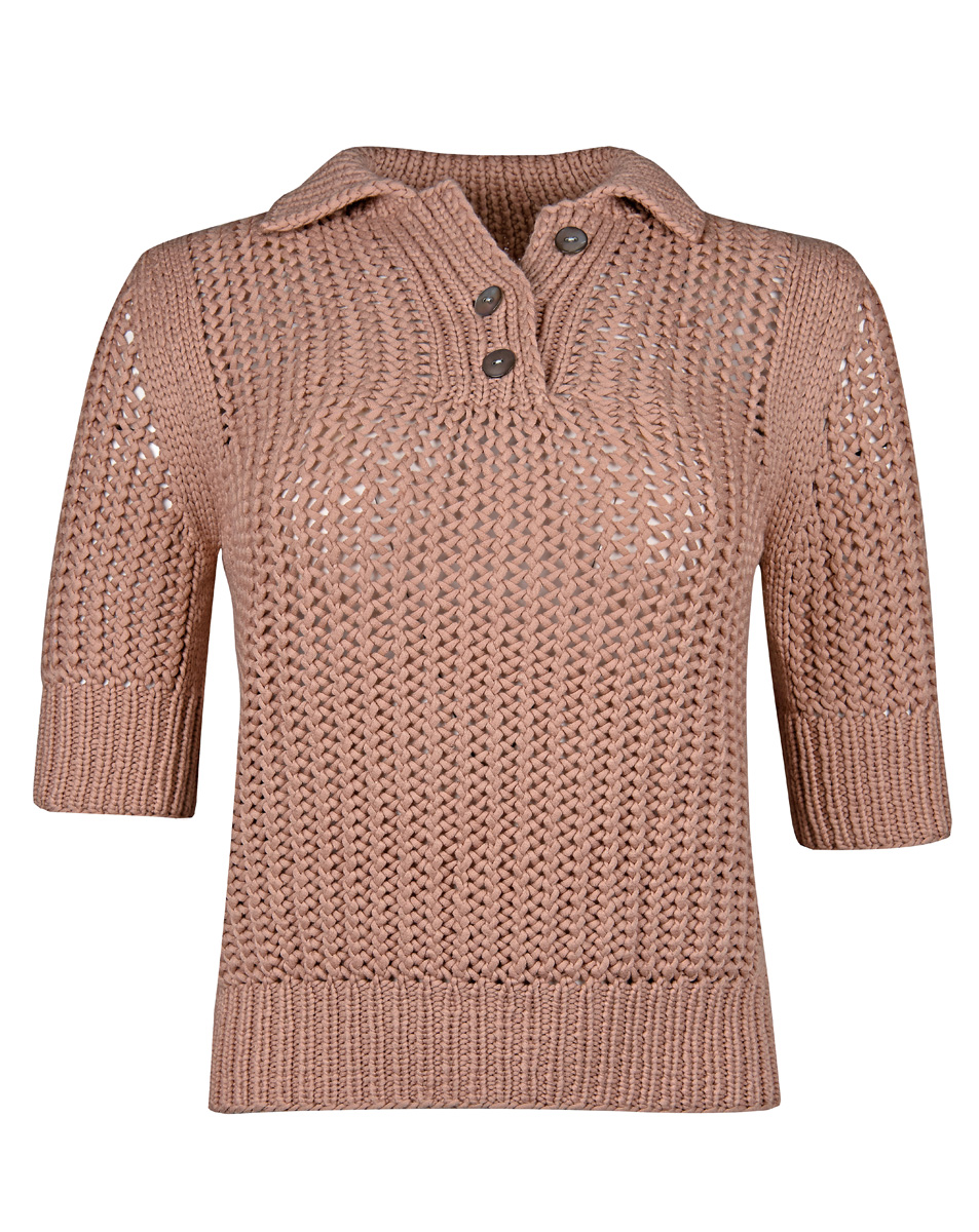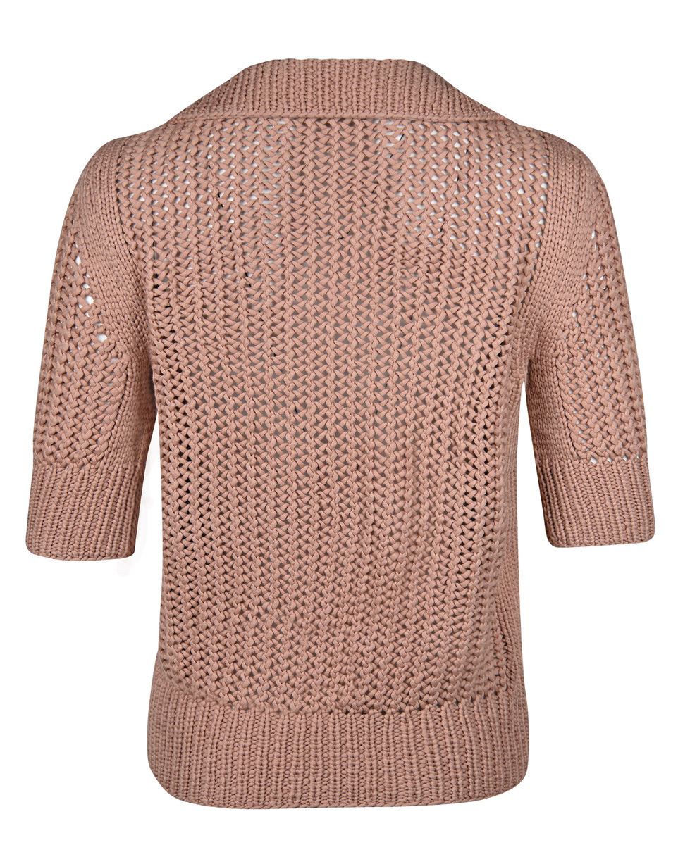 400 (450) g of Lana Grossa Cashseta (40% Modal, 30% polyamide; 15% cashmere, 15% silk; 100 m/50 g) in Rosewood (col 5). Size 5.5 and 6.5 mm needles; size 5.5 mm circular needle, 60 cm long; three 18 mm mother-ofpearl buttons in dark grey