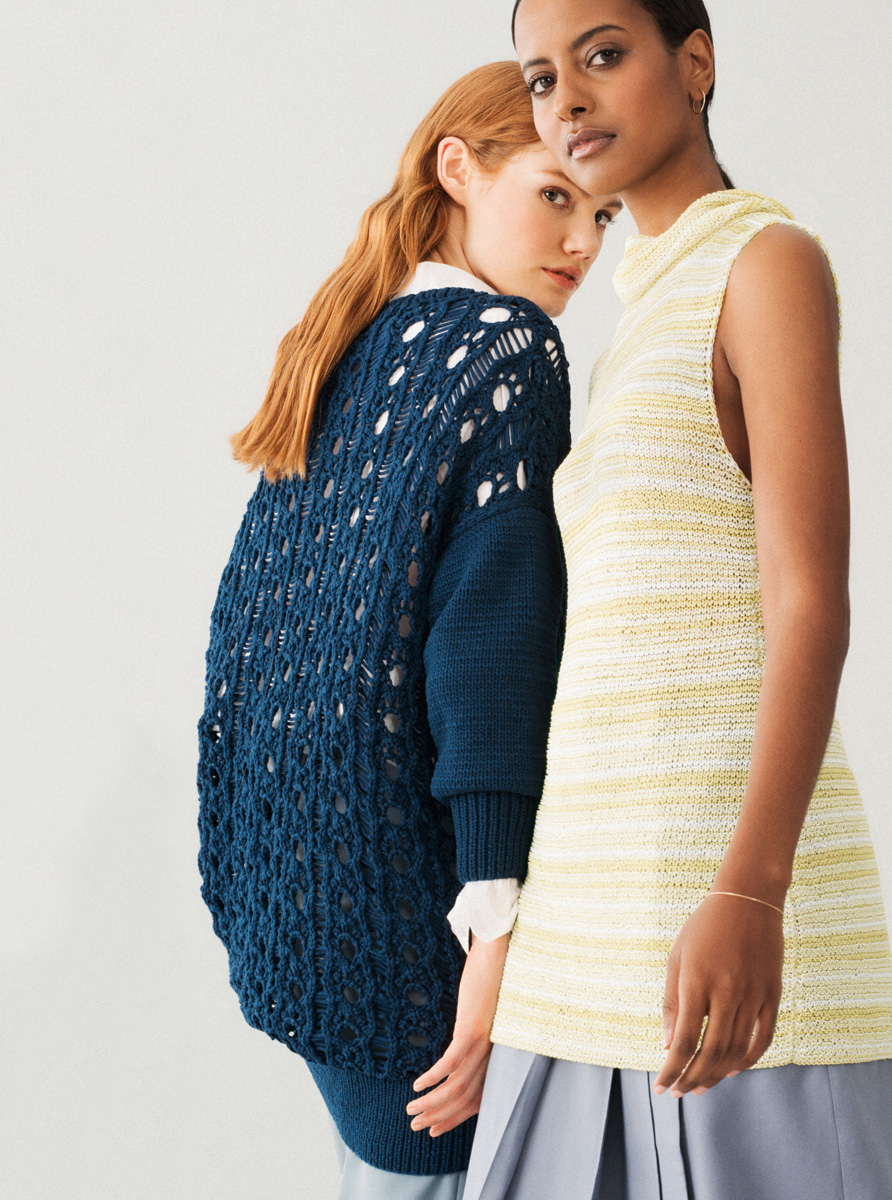 650 (750) g of Lana Grossa Cashseta (40% Modal, 30% polyamide; 15% cashmere, 15% silk; 100 m/50 g) in Midnight Blue (col 13). Size 4 and 6 mm needles; size 4 mm circular needle, 40 cm long