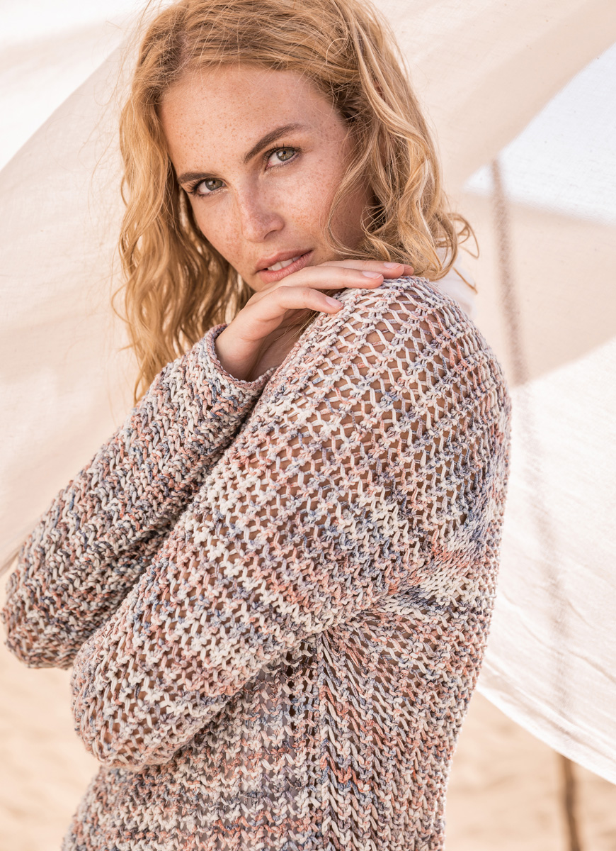 550 (650) g of Lana Grossa Certo (100% GOTS cotton; 115 m/50 g) in Grey Blue/Dark Grey/Red Brown/Natural (col 104). Size 5 mm needles; size 4 mm crochet hook