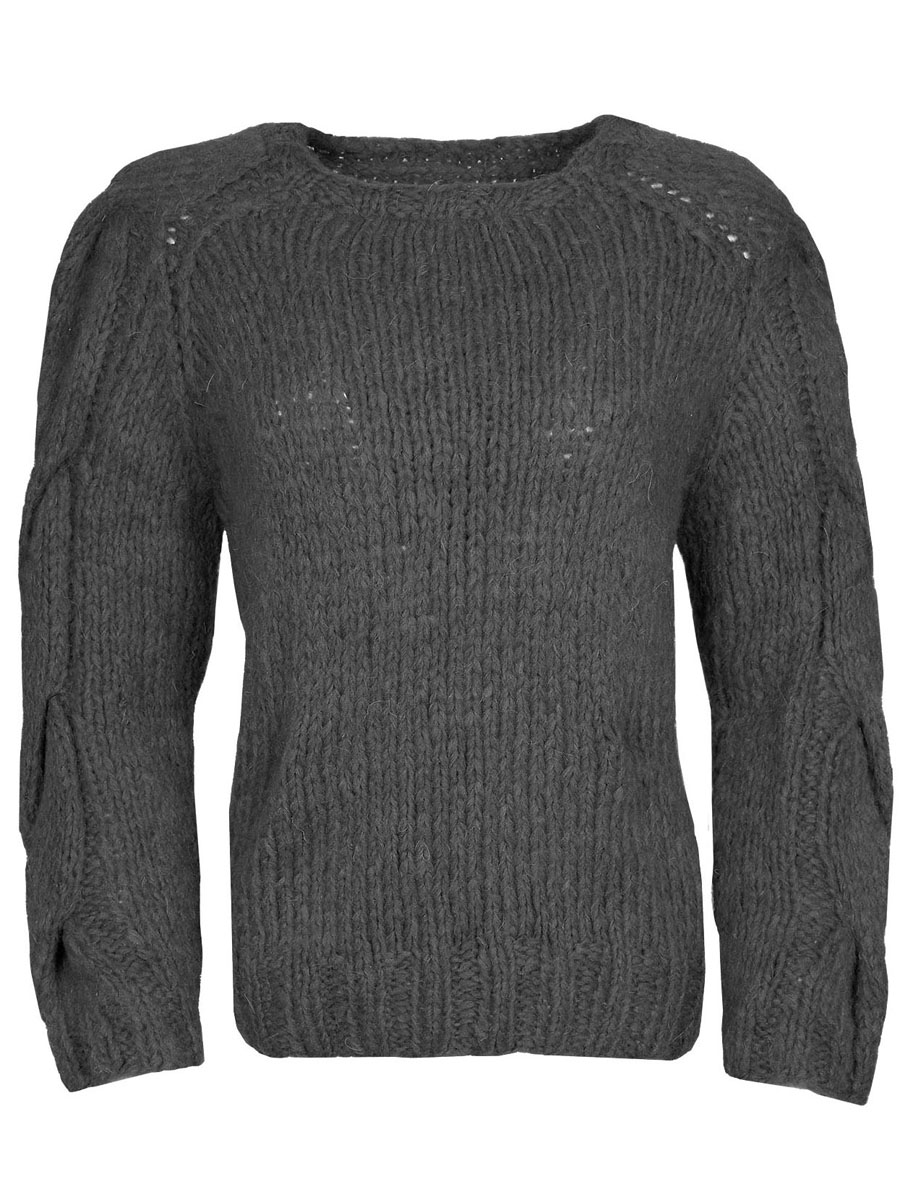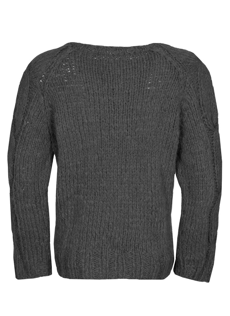 350 (400) g of Lana Grossa Cloud (80% alpaca, 14% Merino wool, 6% polyamide; 80 m/50 g) in Red Violet (col 27). Size 7 and 8 mm needles; size 7 mm circular needle, 50 cm long; cable needle [cn]