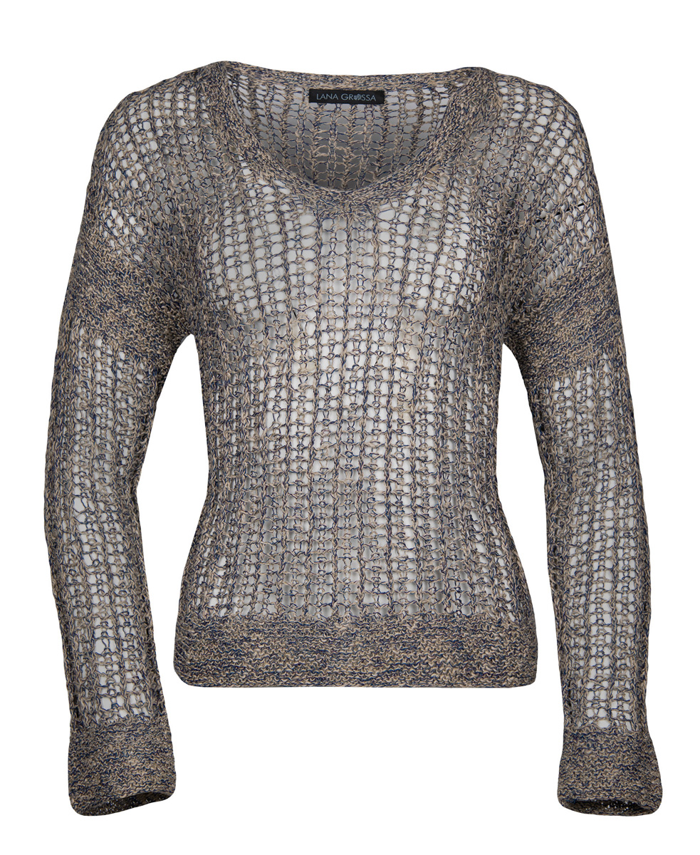 300 (350, 400) g of Lana Grossa Collino (45% cotton, 25% linen, 15% polyester, 15% viscose; 135 m/50 g) in Linen/Marine/Violet (col 17). Size 4.5 mm needles; size 4 mm circular needle, 50 cm long