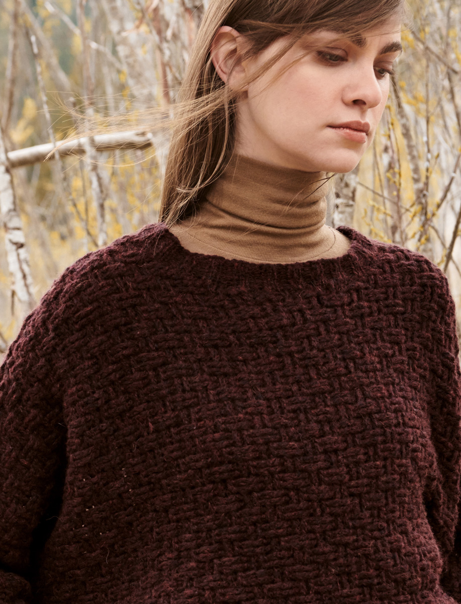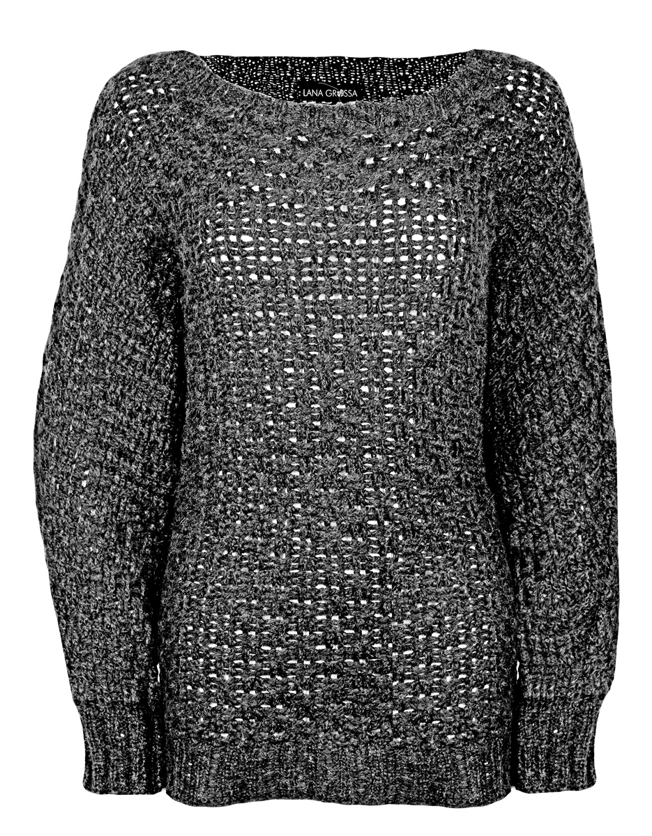 400 (450, 500) g of Lana Grossa Cool Air Fine (50% Merino wool, 28% baby alpaca, 22% acrylic; 240 m/50 g) in Black/Brown (col 20). Size 4.5 mm crochet hook; size 4 mm circular needles, 40 and 60 cm long