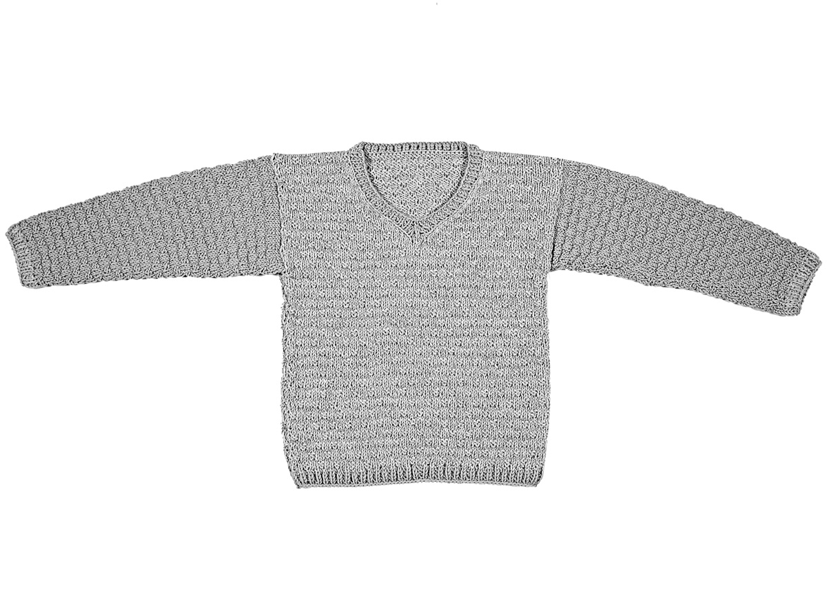 200 (250, 250) g of Lana Grossa Cool Wool Big (100% pure wool; 120 m/50 g) in Light Grey Mélange (col 616); 150 (200, 200) g in Mint (col 947). Size 4 and 4.5 mm needles; size 4 mm circular needle, 40 cm long