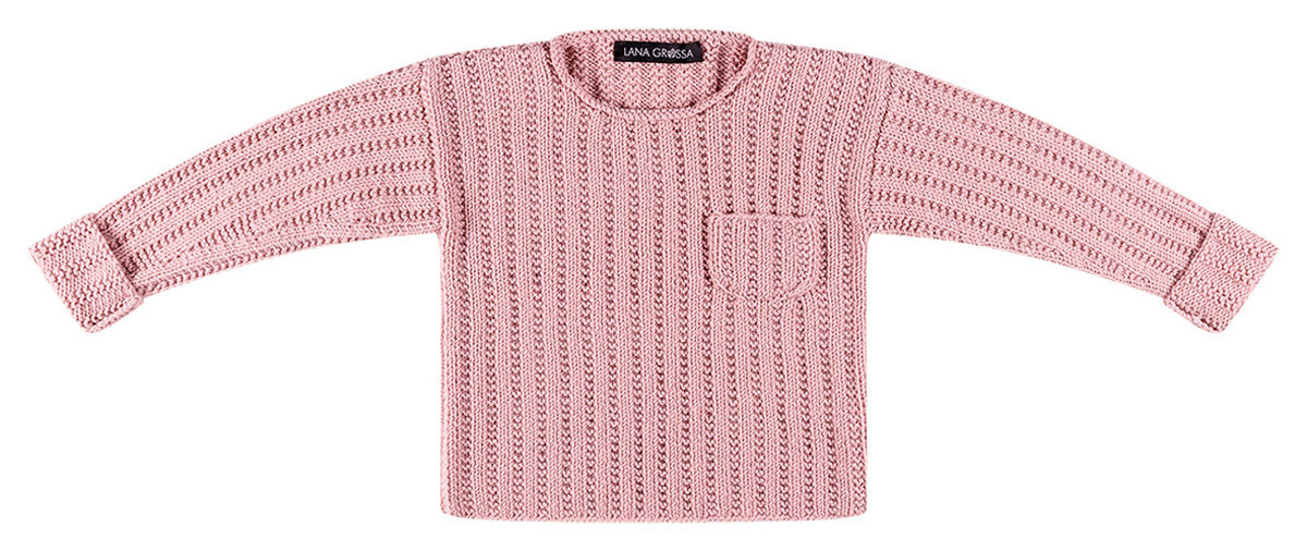 250 (300, 300) g of Lana Grossa Cool Wool Big (100% pure wool; 120 m/50 g) in Antique Pink (col 982). Size 4.5 mm needles; size 4 mm circular needle, 40 cm long