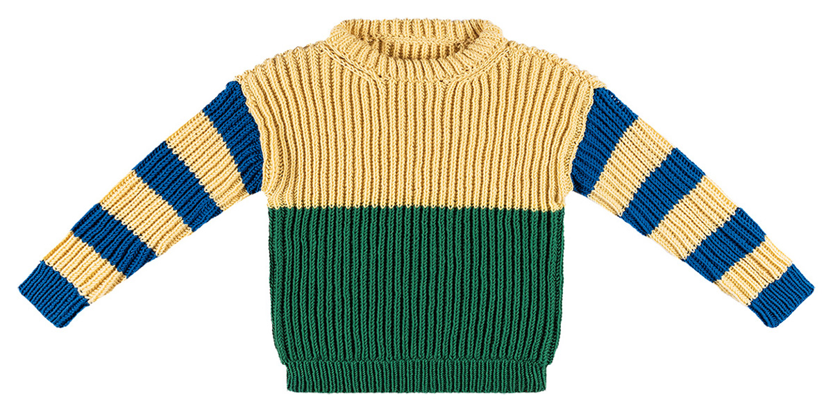 200 (250, 250) g of Lana Grossa Cool Wool (100% pure wool; 160 m/50 g) in Vanilla (col 411), 150 (200, 200) g in Green (col 2017) and 100 (150, 150) g in Ink Blue (col 2071). Size 3.5 and 4 mm needles; size 4 mm circular needle, 40 cm long