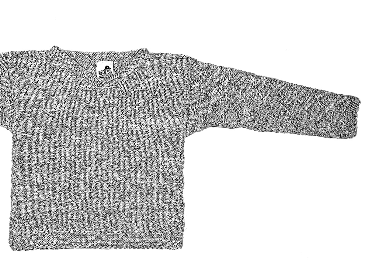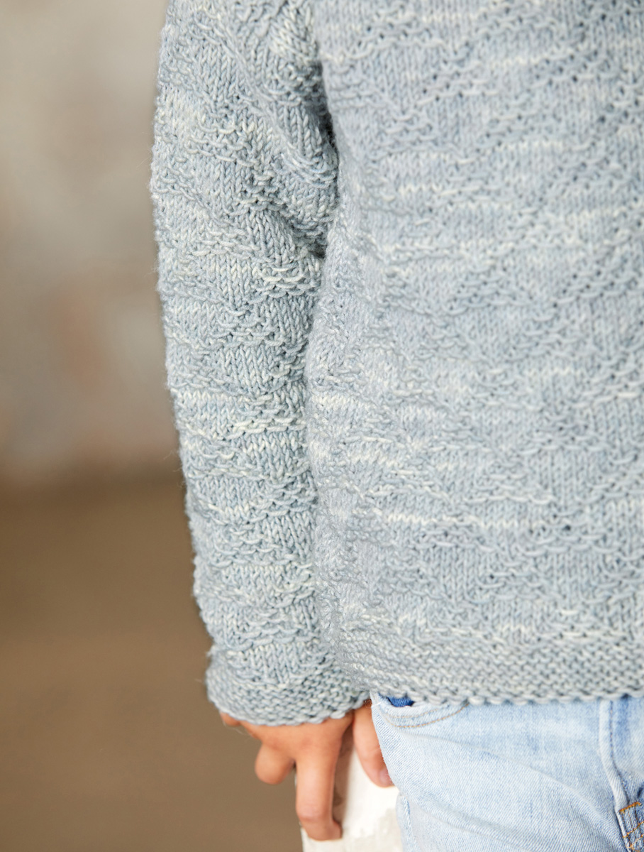 300 (300, 350) g of Lana Grossa Cool Wool Semi Solid (100% pure wool; 160 m/50 g) in Light-/Medium Grey/Natural Mélange (col 6510). Size 4.5 mm needles; size 4.5 mm circular needle, 40 cm long