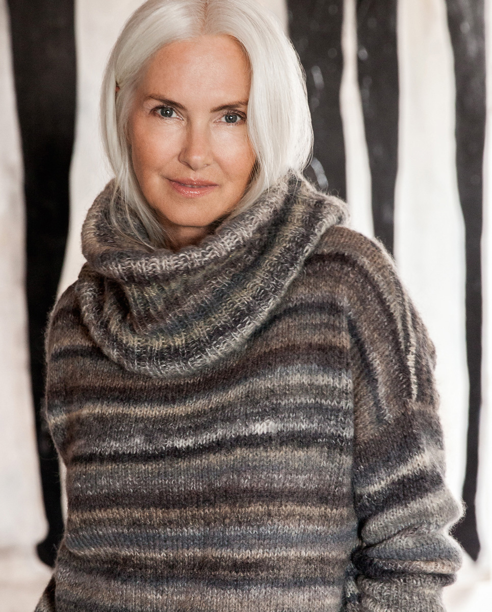 Lana Grossa Tutti (30% polyamide, 25% mohair, 25% superfine alpaca, 20% Merino wool; 330 m/100 g) in Dark Grey/Charcoal/Natural/Grey-Brown/Grey (col 14): 300 (400, 500) g for pullover, 100 g for cowl. Size 5 mm needles; size 5 mm circular needle, 60 cm long; size 4 mm crochet hook