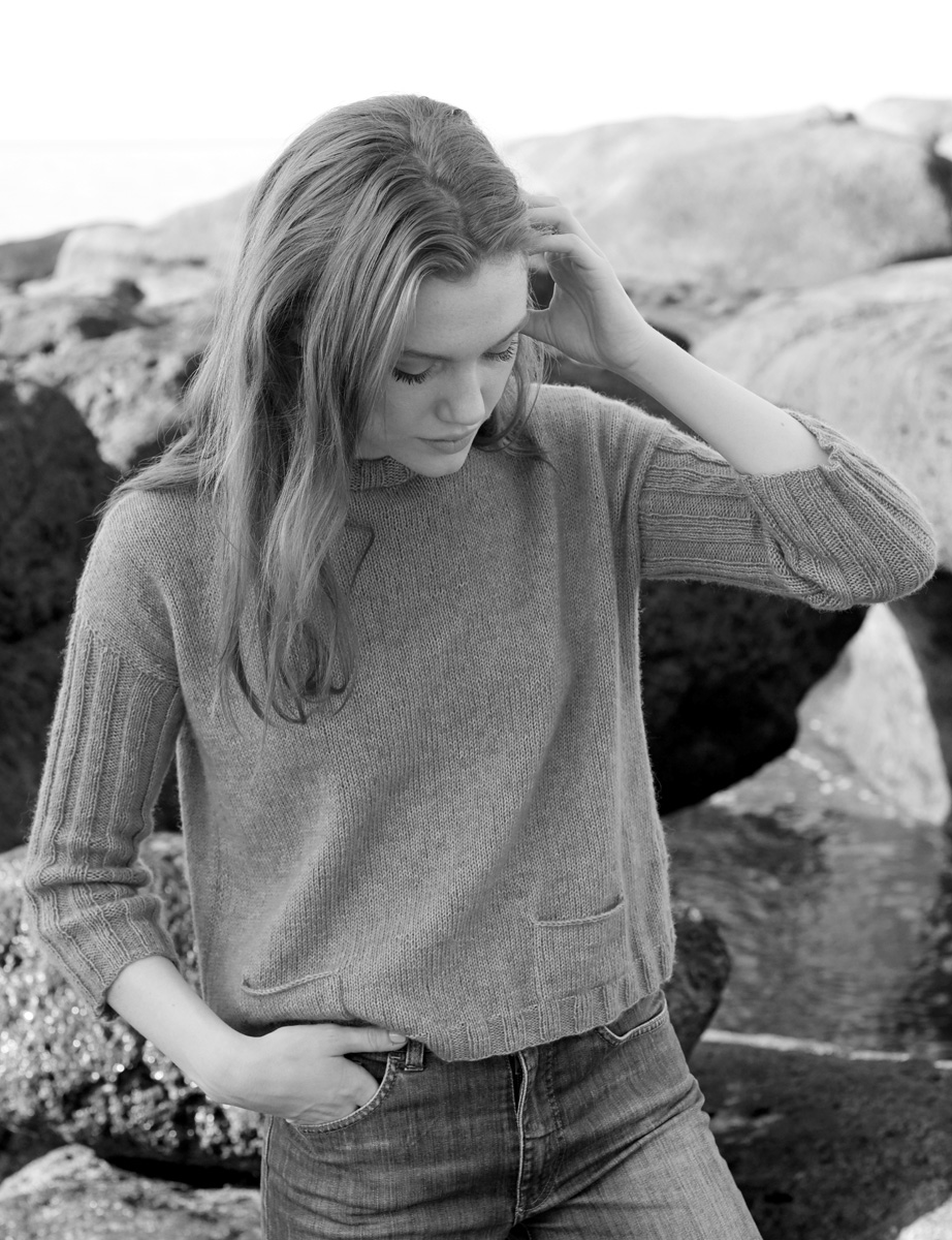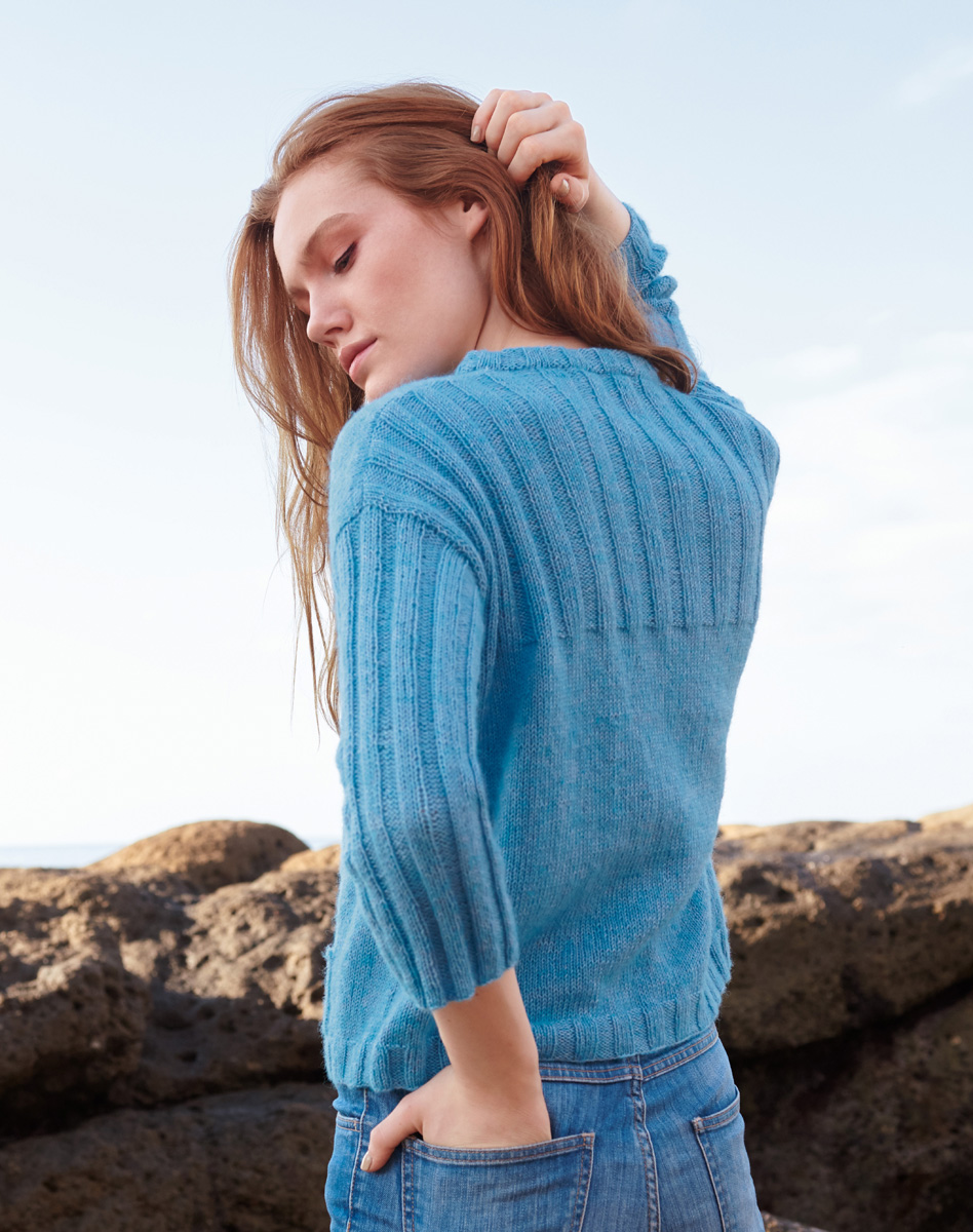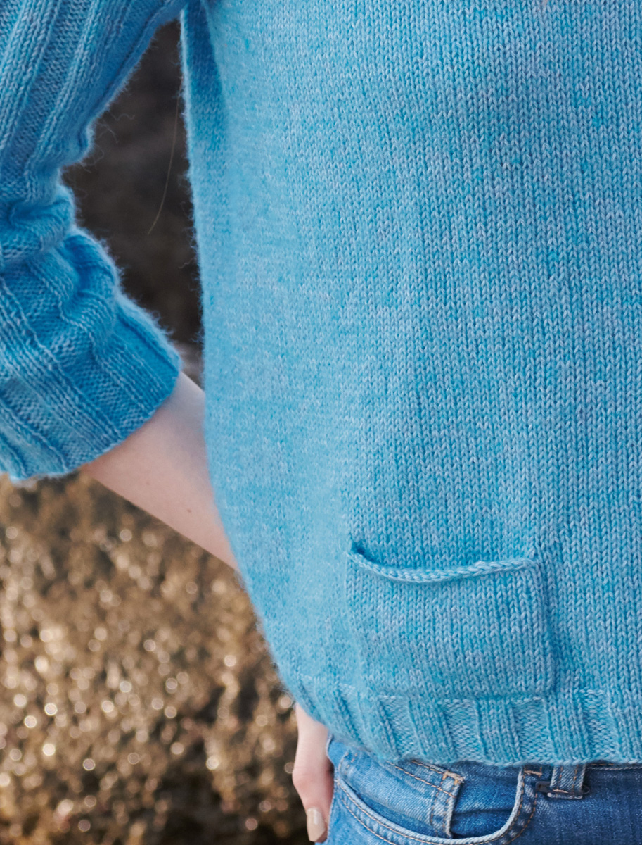 300 (350) g of Lana Grossa Ecopuno (72% cotton, 17% pure wool, 11% alpaca; 215 m/50 g) in Turquoise Blue (col 29). Size 3 and 4 mm needles; size 3 mm circular needle, 40 cm long