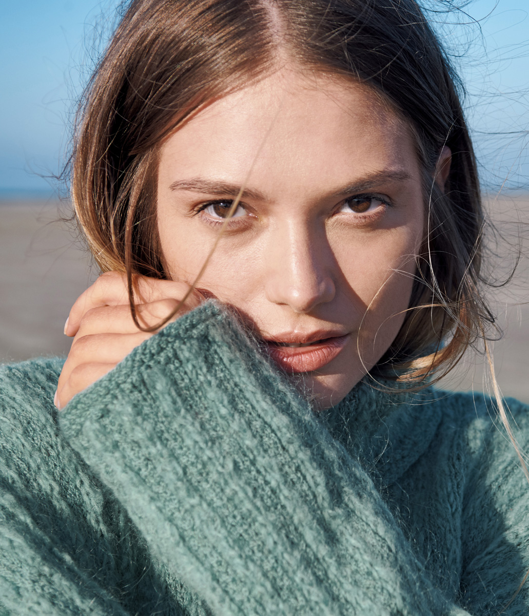 250 (200) g of Lana Grossa Fatto (62% Merino wool, 26% mohair, 12% polyamide; 175 m/50 g) in Mint/Turquoise (col 5) and 200 (250) g of Lana Grossa Peloso (54% Merino wool, 26% mohair, 20% acrylic; 210 m/50 g) in Mint (col 5). Size 5.5 and 6 mm needles; size 5.5 and 6 mm circular needles, each 40 cm long