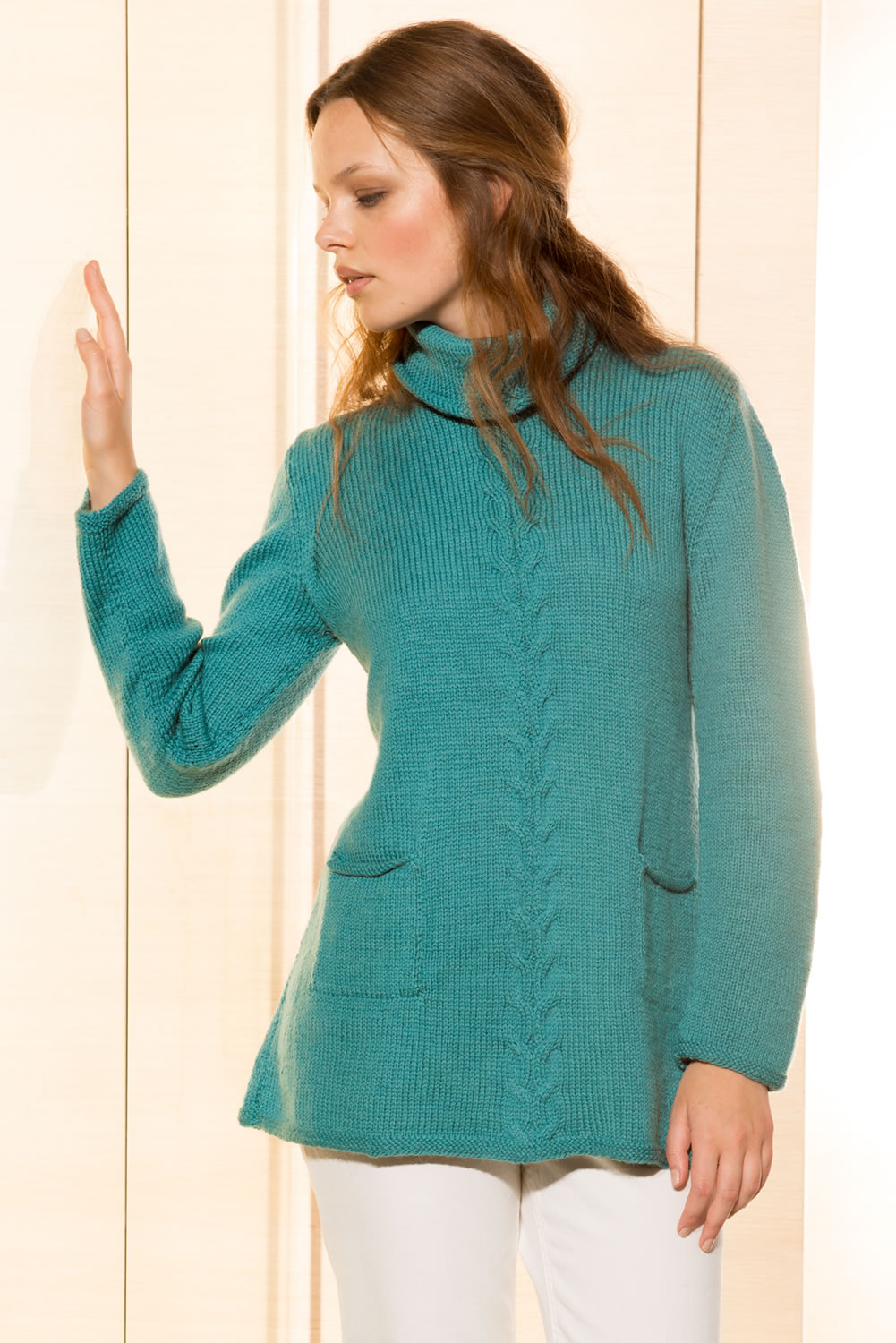 A center cable gives this easy-to-wear A-line tunic a long, lean line. Patch pockets add a practical element.