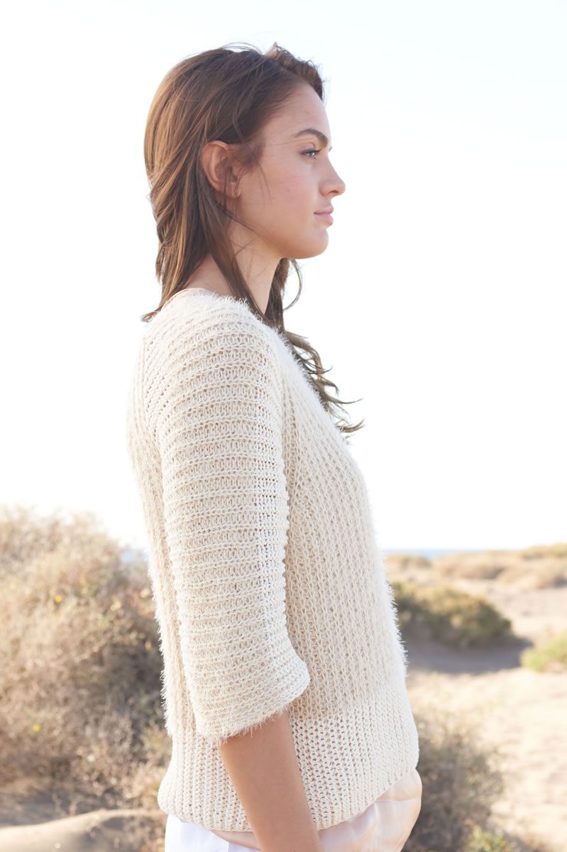 200 g of Lana Grossa Estivo II (85% cotton, 15% polyamide; 150 m/50 g) in Light Ivory (col 32) and 150 g of Lana Grossa Summer Lace (97% cotton, 3% Elité; 195 m/50 g) in Cream (col 2). Size 4 and 5 needles; size 4 mm circular needle, 50 cm long.
