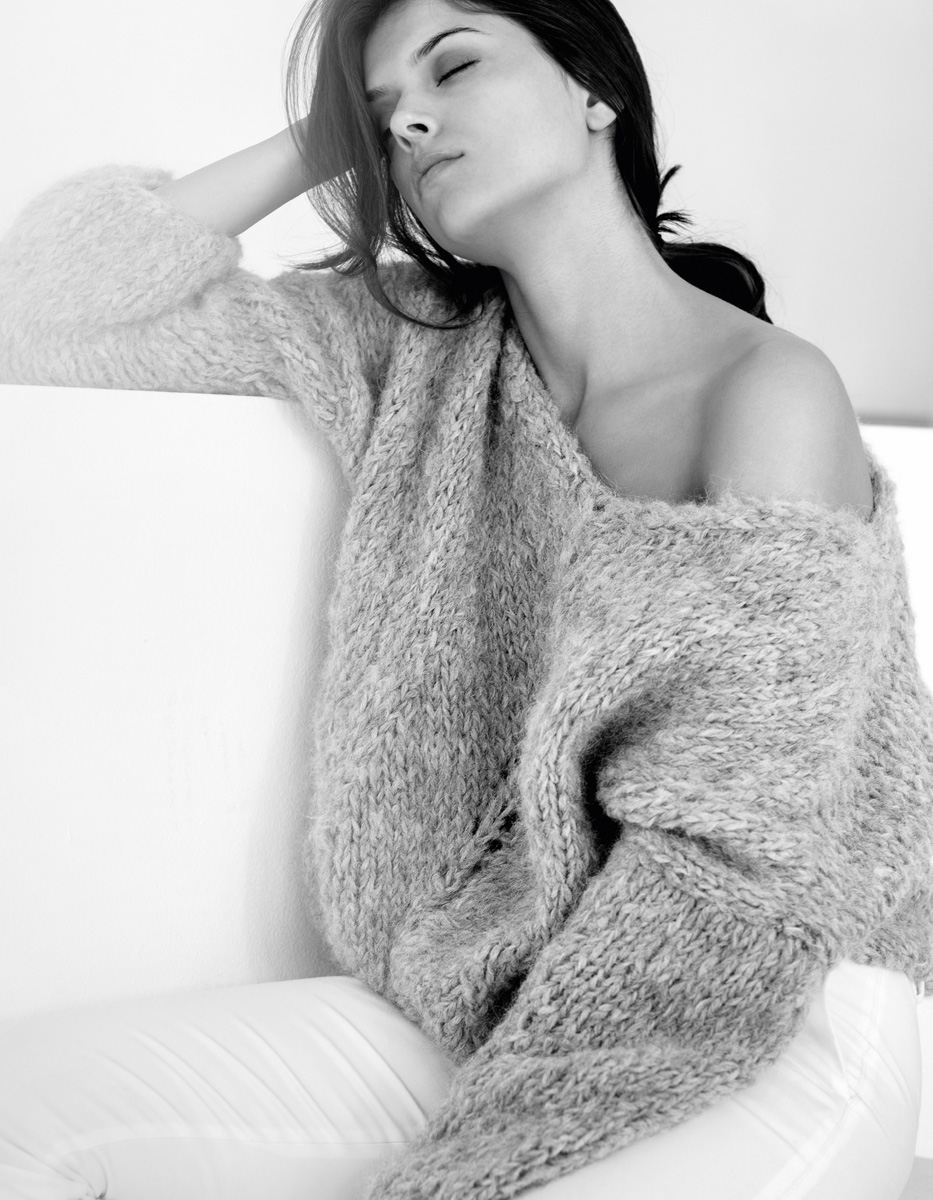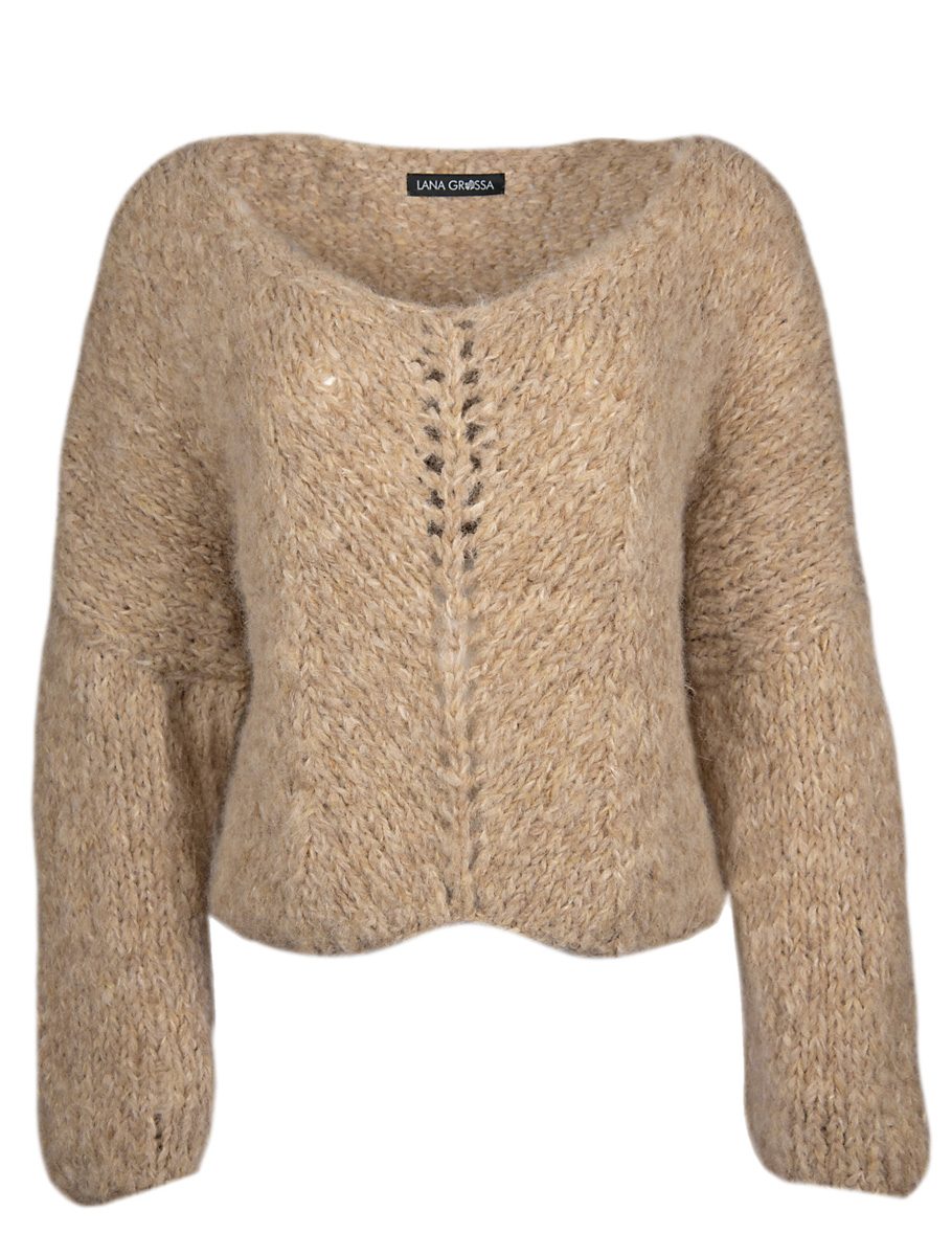 300 (350, 400) g of Lana Grossa Lala Berlin Furry (90% alpaca, 10% polyamide; 75 m/50 g) in Beige (col 2). Size 10 mm needles; size 7 mm crochet hook