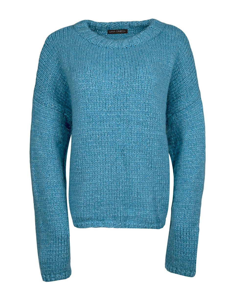 500 (550, 600) g of Lana Grossa Lala Berlin Lovely (52 % alpaca, 18 % cashmere, 18 % pure wool, 12 % polyamide; 90 m / 50 g) in Sky Blue (col 19). Size 5.5 and 6 mm needles; size 5.5 mm circular needle, 40 cm long