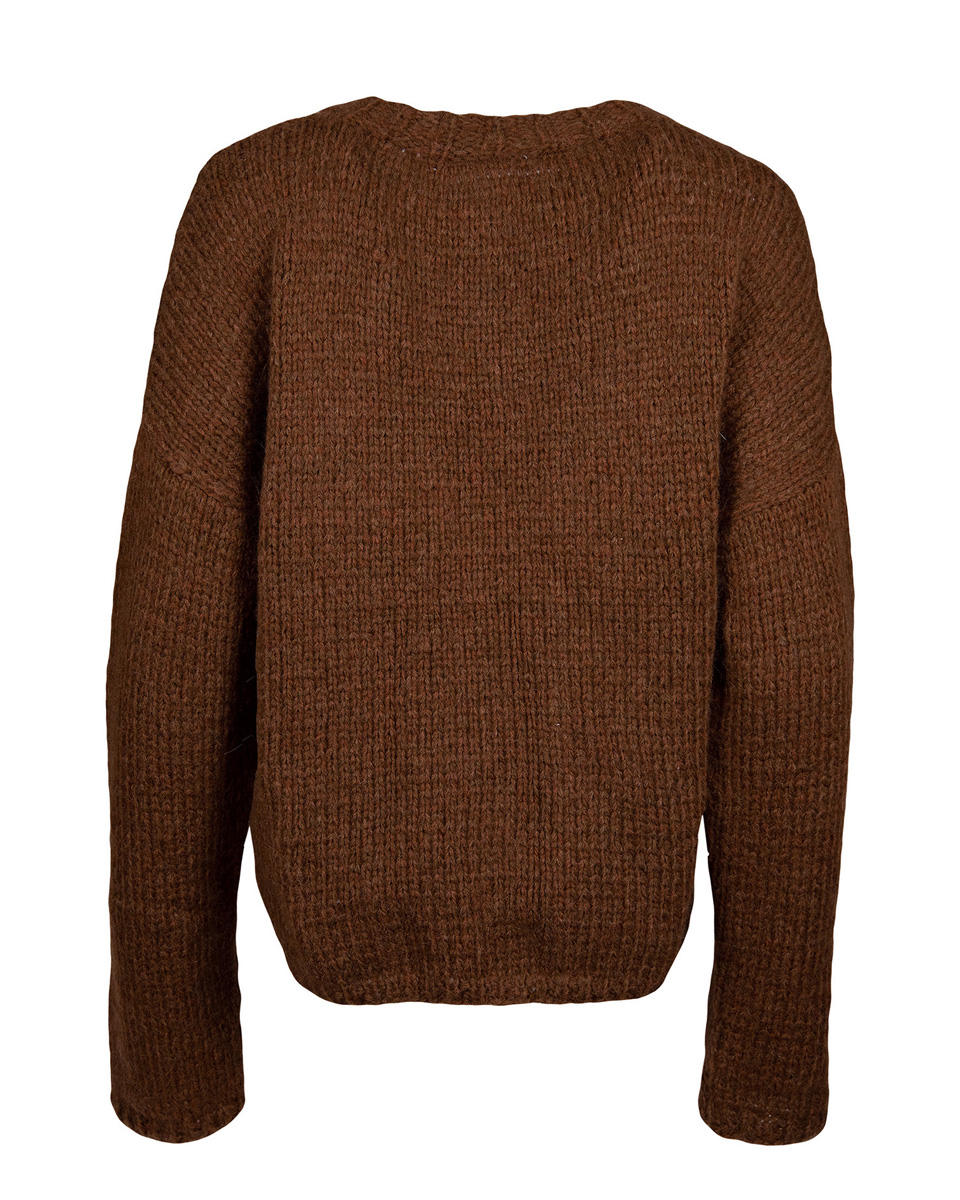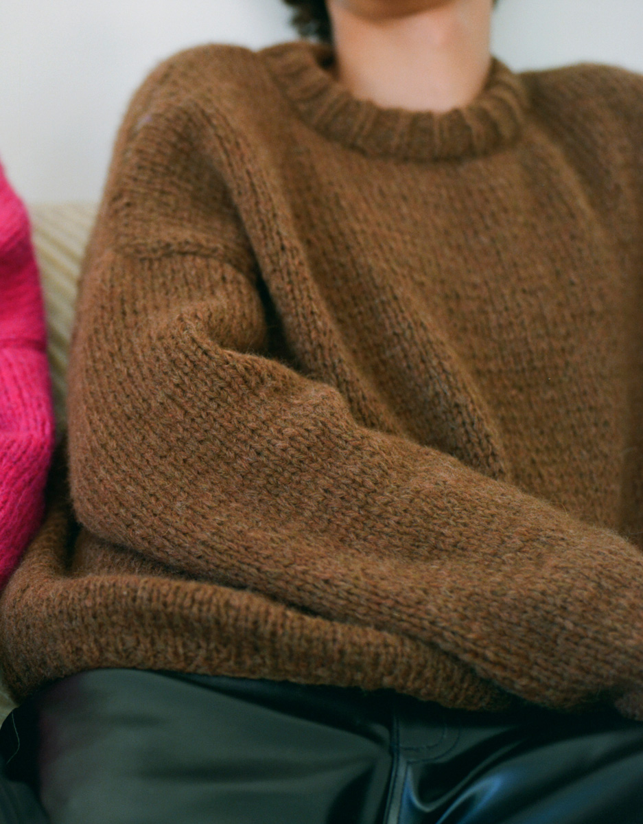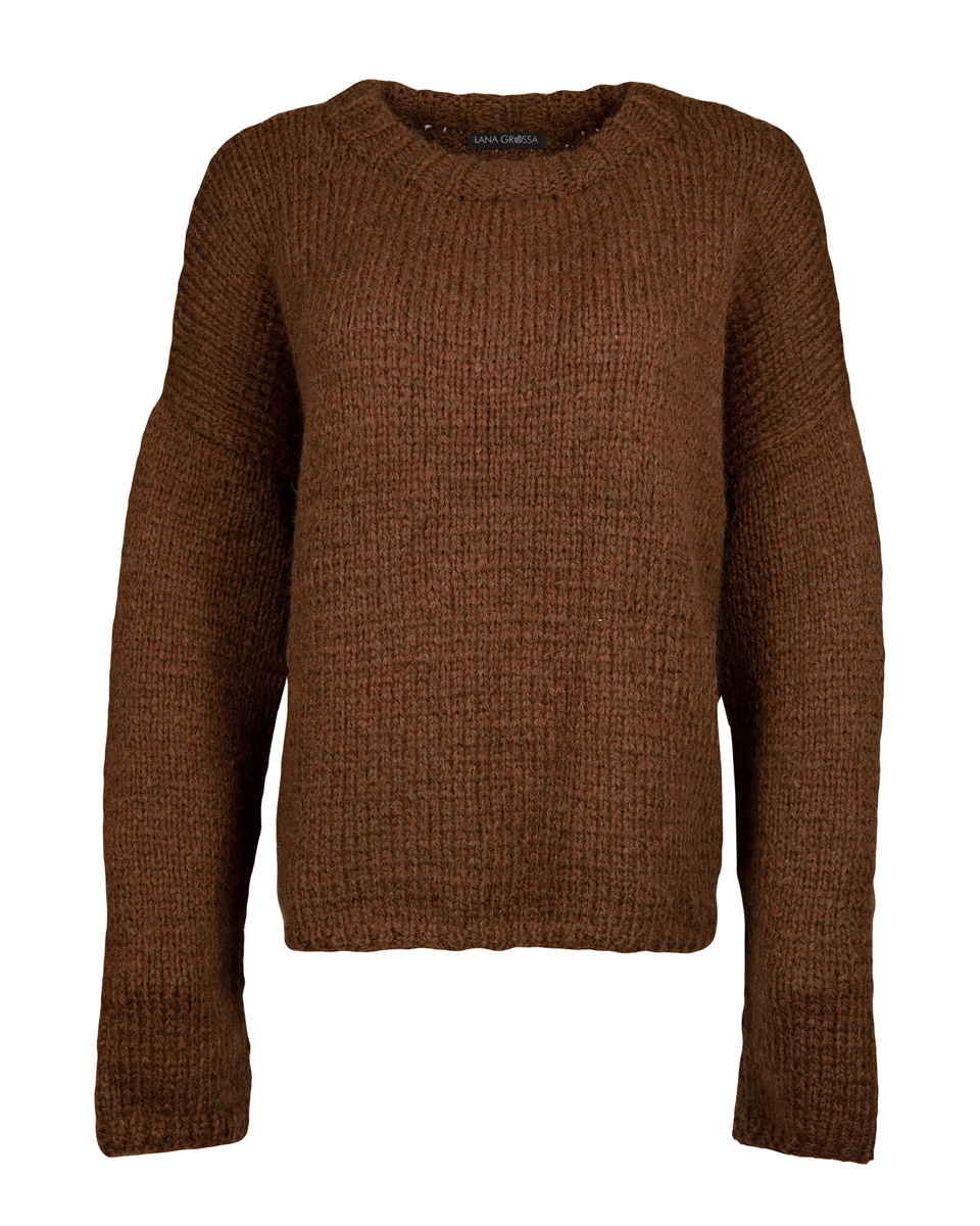 500 (550, 600) g of Lana Grossa Lala Berlin Lovely (52 % alpaca, 18 % cashmere, 18 % pure wool, 12 % polyamide; 90 m / 50 g) in Brown Mélange (col 21). Size 5 and 6 mm needles; size 5 mm circular needle, 40 cm long