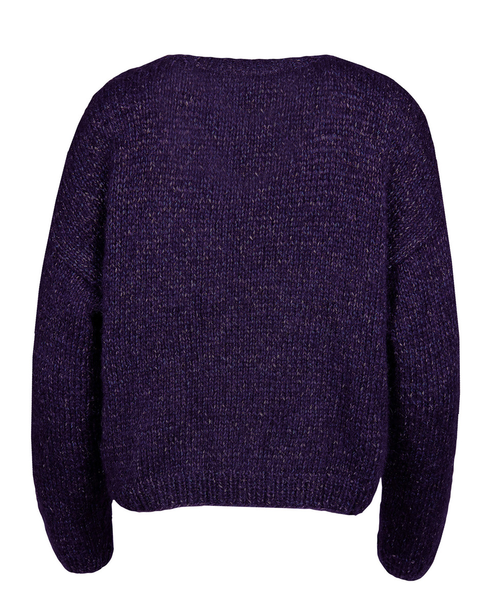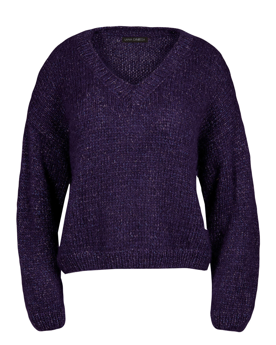 300 (300, 350) g of Lana Grossa Lala Berlin Shiny (46 % alpaca, 30 % cotton, 8 % pure wool, 8 % polyamide, 8 % polyester; 150 m / 50 g) in Aubergine (col 2). Size 4 and 5 mm needles; size 4 mm circular needle, 40 cm long