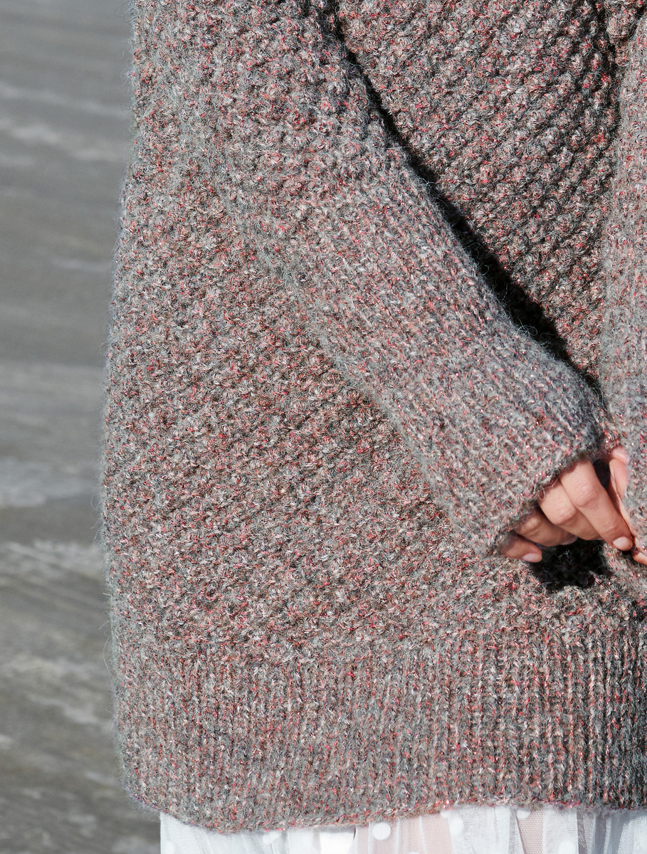 500 (550, 600) g of Lana Grossa Lala Berlin Shiny (46% baby alpaca, 30% cotton, 8% Merino wool, 8% polyester, 8% polyamide; 150 m/50 g) in Red/Natural (col 5). Size 4.5 and 6 mm needles; size 6 mm circular needle, 100 cm long; size 4.5 and 5 mm circular needles, each 60 cm long