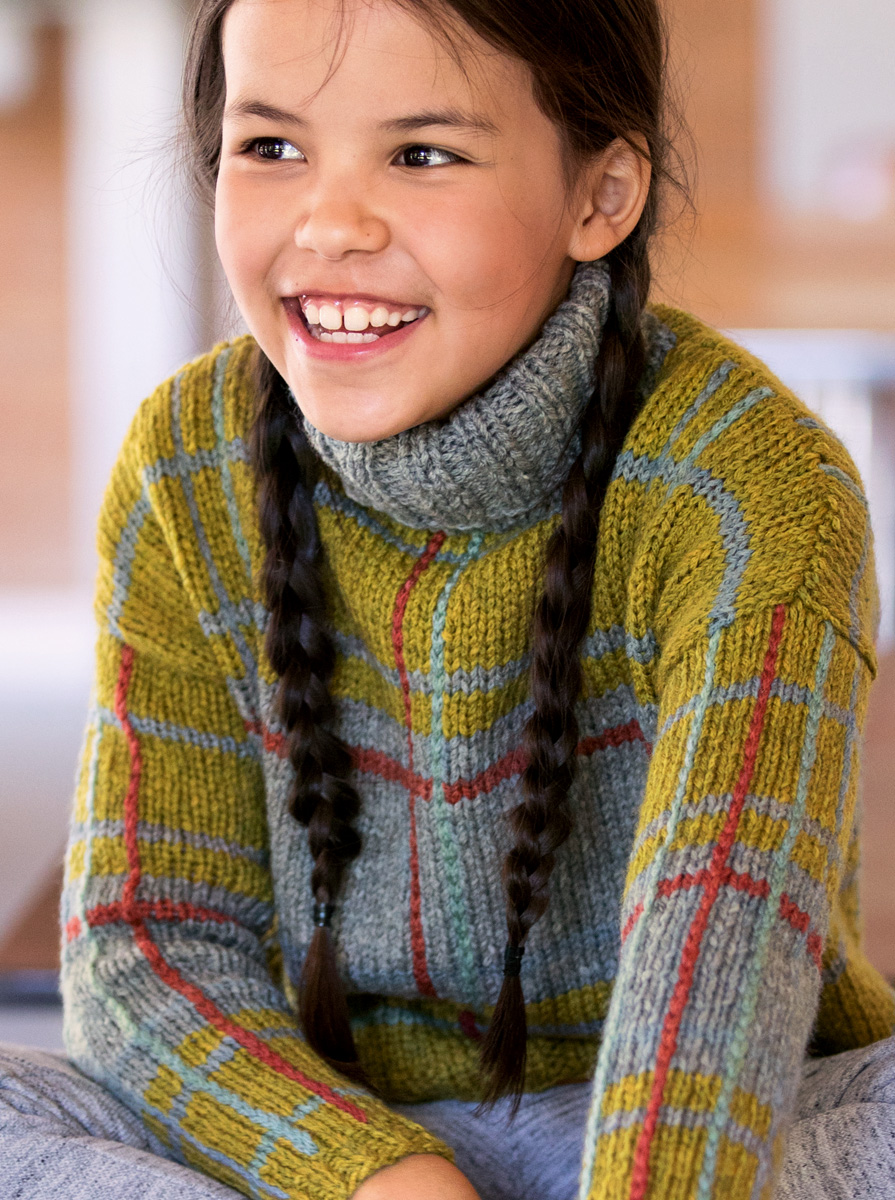 150 (200) g of Lana Grossa Landlust Merino 120 (100% superwash Merino wool; 120 m/50 g) in Pistachio (col 114), 100 g in Light Grey (col 118) and 50 g each in Light Blue (col 107), Mint (col 129) and Dark Red (col 111). Size 5.5 and 6 mm needles; size 6 mm circular needle, 40 cm long; size 4.5 mm crochet hook
