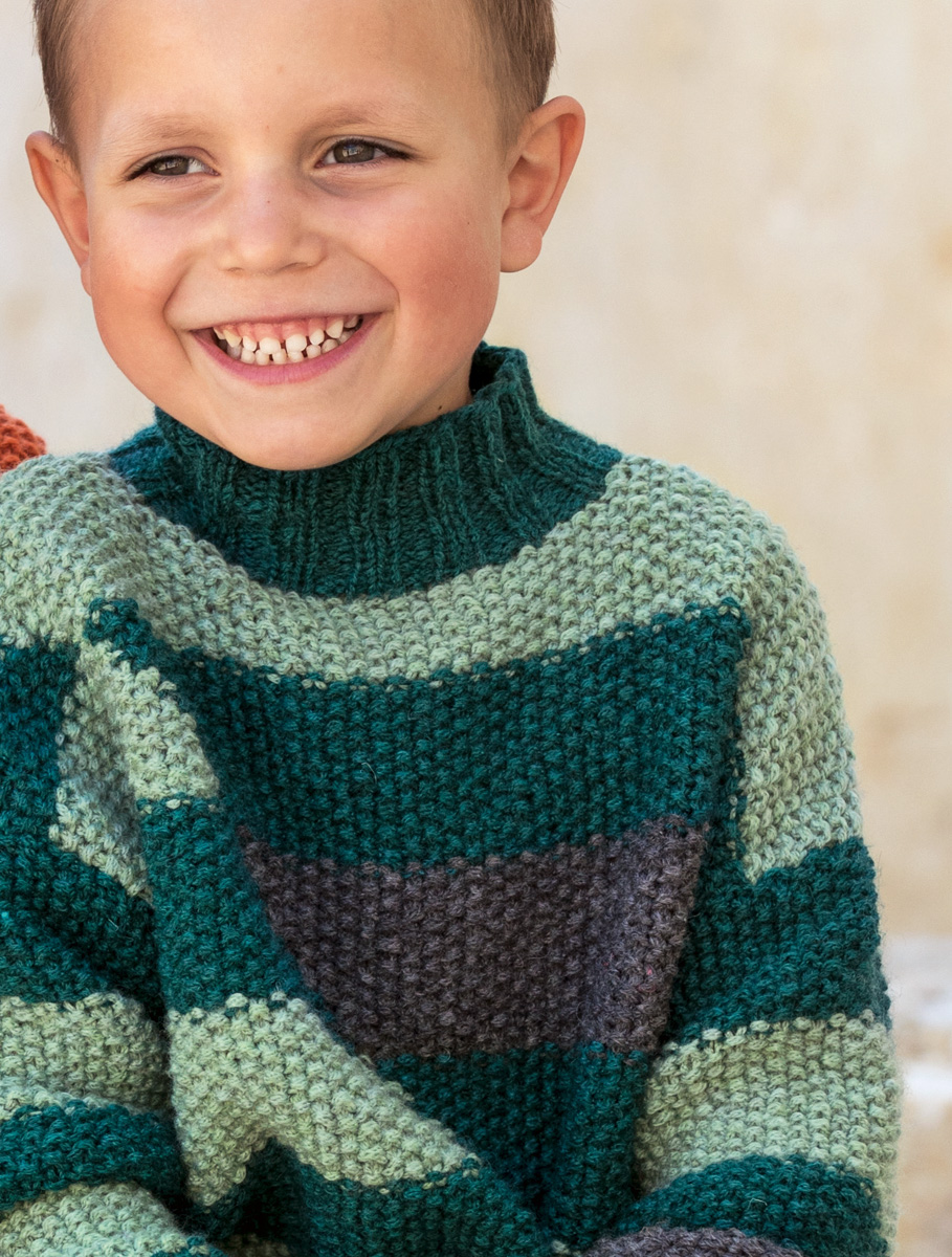 150 (200) g of Lana Grossa Landlust Merino 120 (100% superwash Merino wool; 120 m/50 g) in Petrol (col 116), 100 g in Mint (col 129) and 50 g in Dark Grey (col 119). Size 5.5 mm needles; size 5.5 mm circular needle, 40 cm long