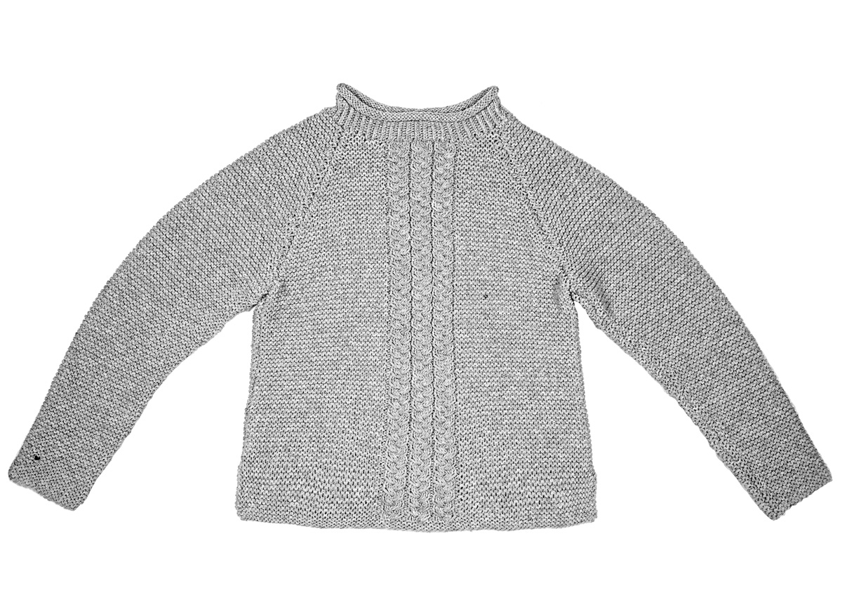 300 (350, 350) g of Lana Grossa Landlust Merino 180 (100% superwash Merino wool; 180 m/50 g) in Silver Green (col 236). Size 5.5 mm needles; size 4.5 mm circular needle, 40 cm long; cable needle [cn]