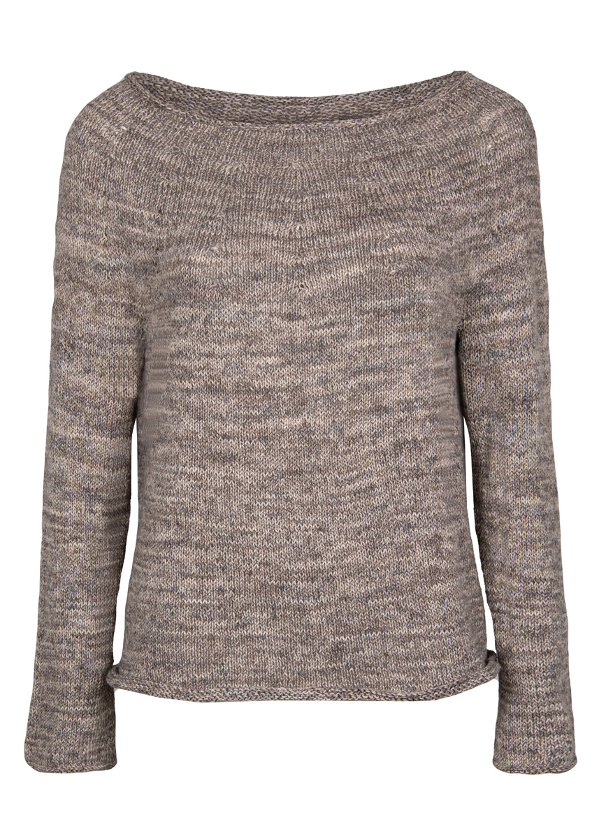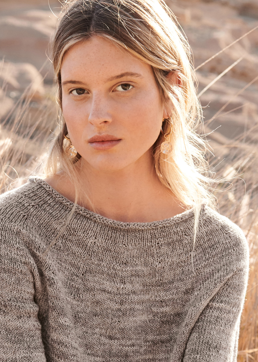 300 (350, 400) g of Lana Grossa Landlust Sommerseide Mélange (50% silk, 50% cotton; 170 m/50 g) in Beige Mélange (col 104). Size 4 mm circular needles, 40, 60 and 80 cm long; one set size 4 mm double-pointed needles [dpns].