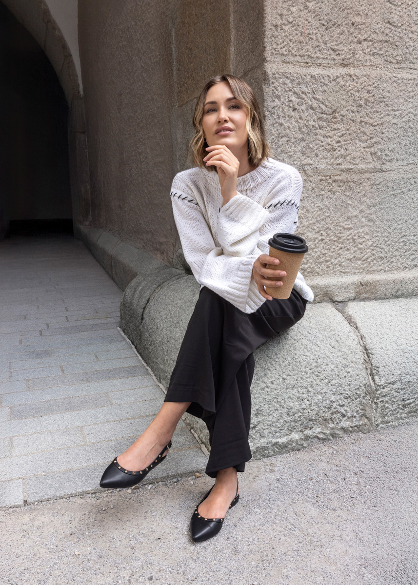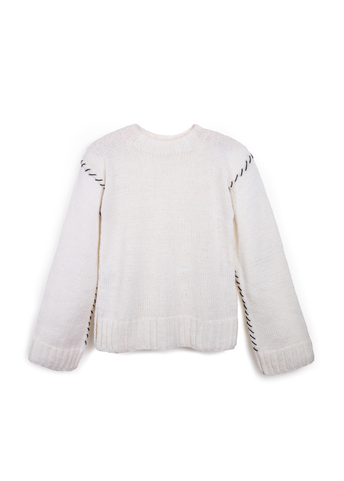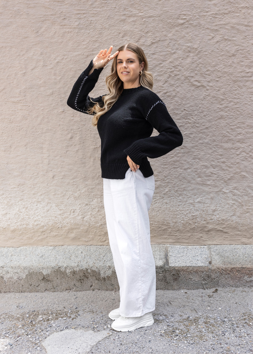 The pullover has a total length of 56 (58 - 60 - 62 - 64 - 66) cm and a positive ease of 6 cm at 80 cm bust circumference (6 cm at 88 cm bust circumference - 4 cm at 96 cm bust circumference - 4 cm at 104 cm bust circumference - 4 cm at 116 cm bust circumference - 4 cm at 128 cm bust circumference).
