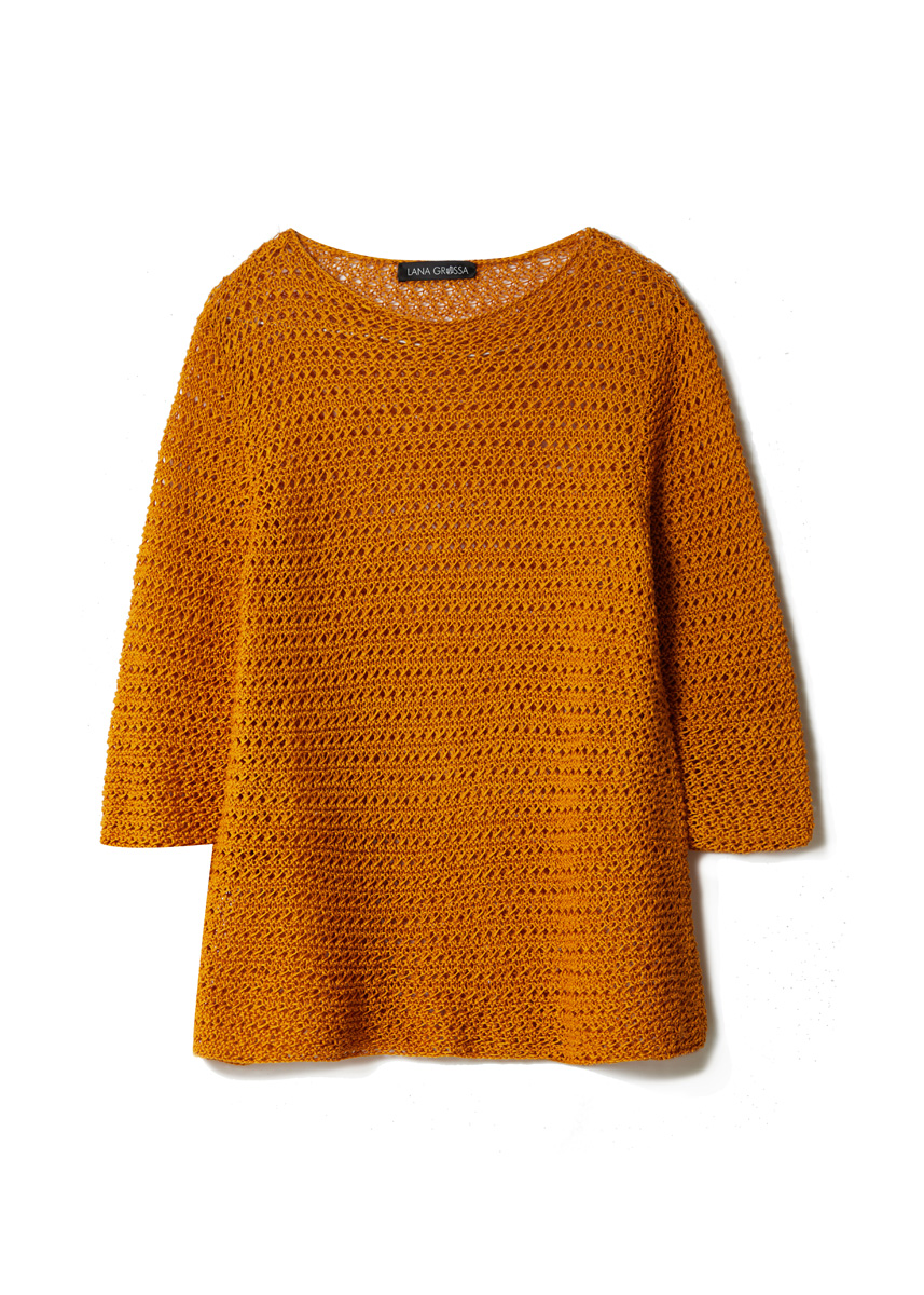 250 (250, 300) g of Lana Grossa Nastrino (100% cotton; 190 m/50 g) in Broom Yellow (col 11). Size 3.5 mm needles; size 3.5 mm circular needle, 50 cm long