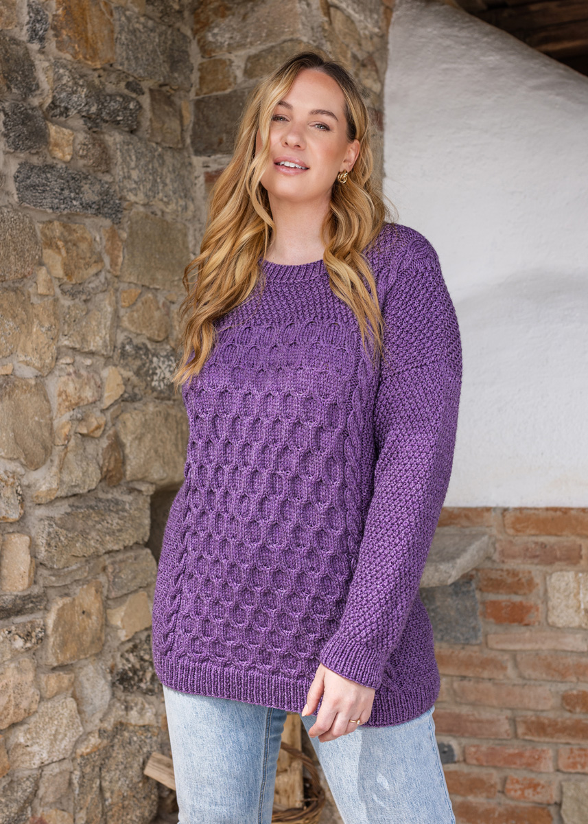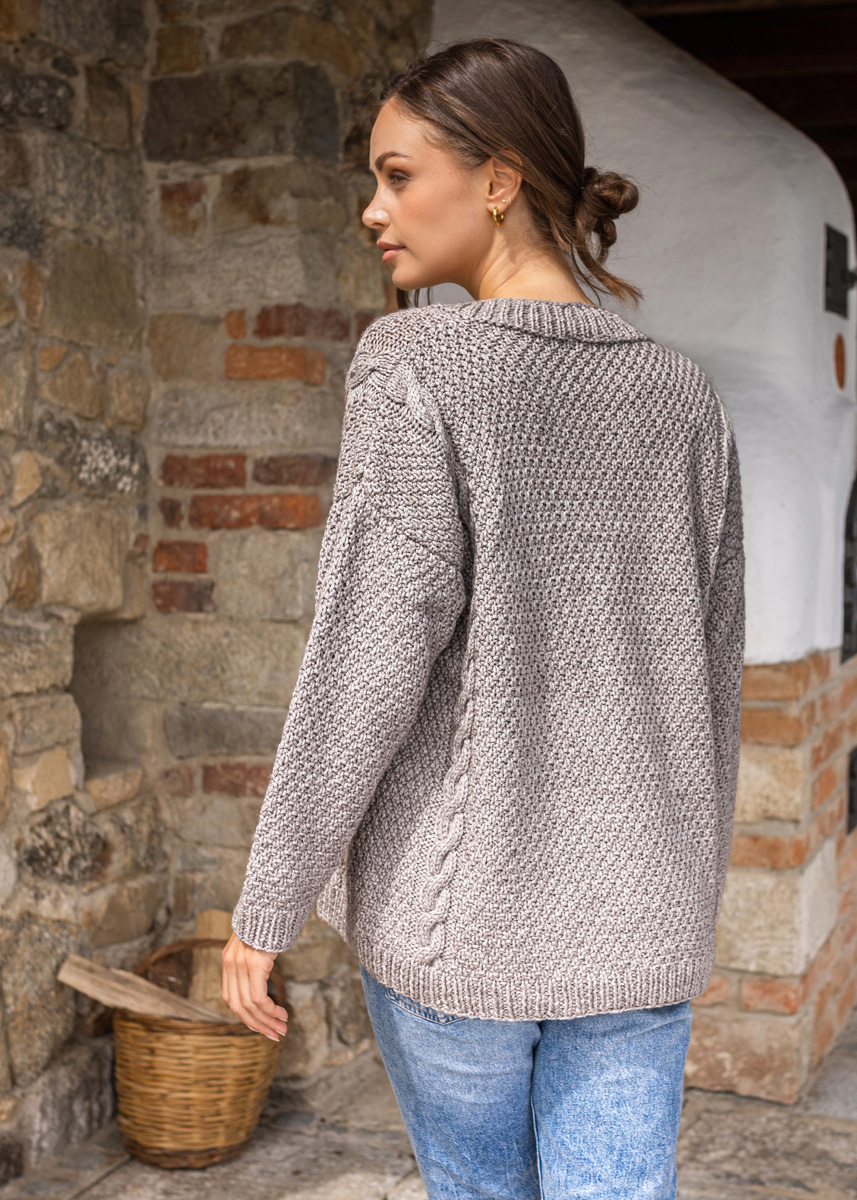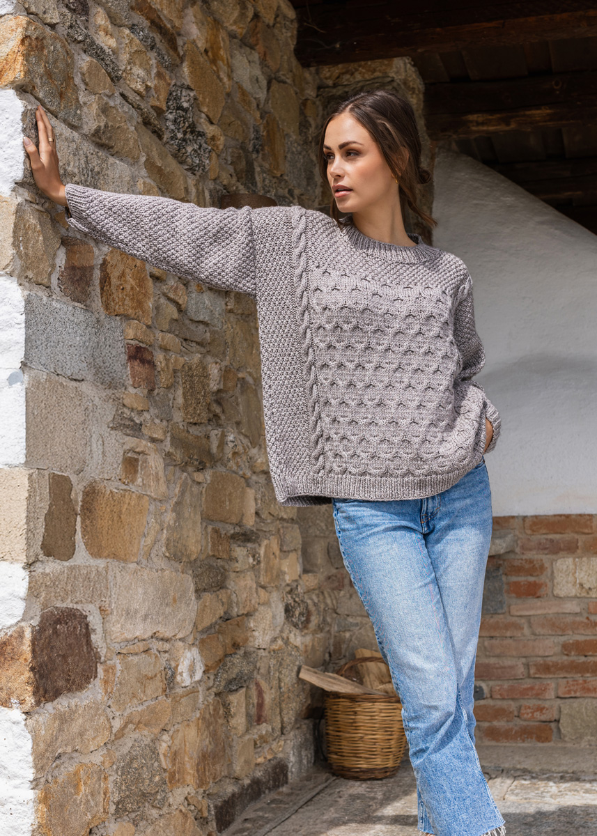 The sweater has a total length of 70 (70 - 72 - 74 - 76 - 78) cm and a positive ease of 32 cm at 80 cm chest circumference (32 cm at 88 cm chest circumference - 28 cm at 96 cm chest circumference - 28 cm at 104 cm chest circumference - 24 cm at 116 cm chest circumference - 24 cm at 128 cm chest circumference).