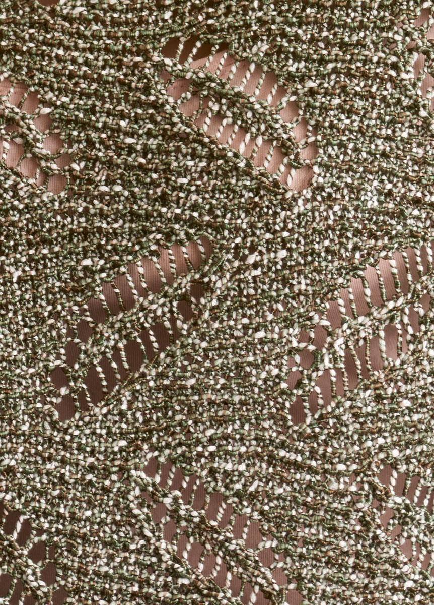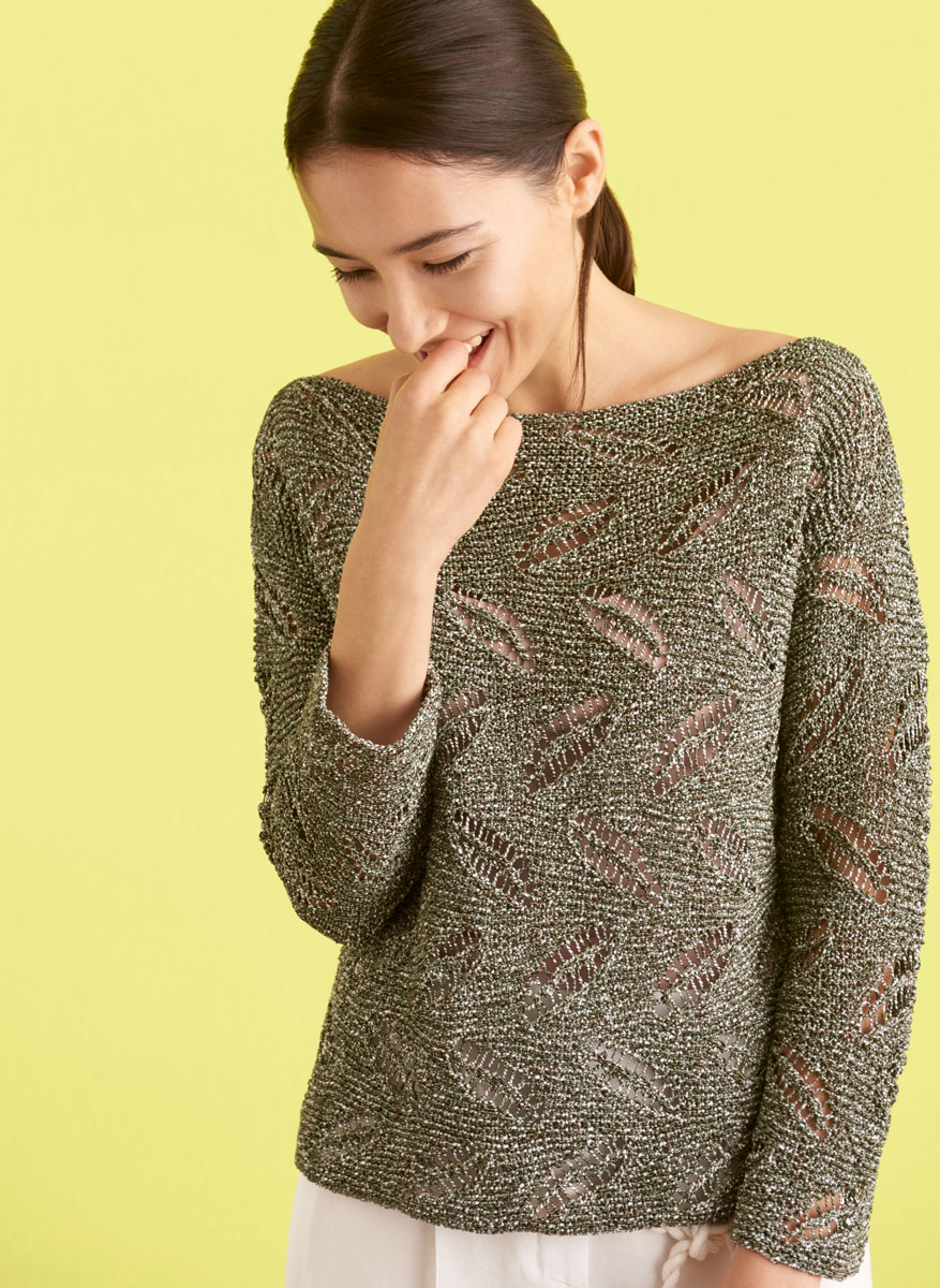 450 (500, 550) g of Lana Grossa Ombra (75% cotton, 25% polyester; 120 m/50 g) in Grey- Green /Natural (col 5). Size 3.5 and 4 mm needles