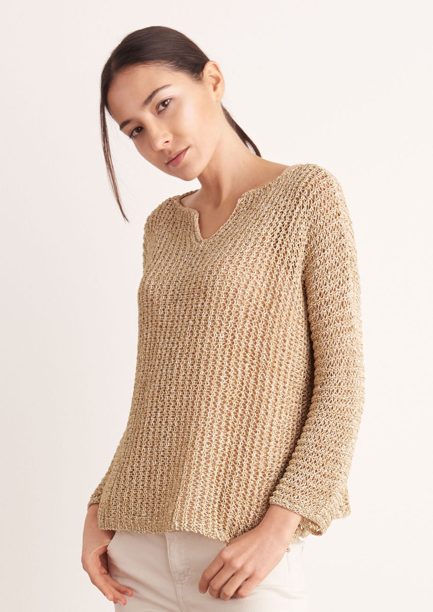 500 (550, 600) g of Lana Grossa Ombra (75% cotton, 25% polyester; 120 m/50 g) in White/Beige (col 1). Size 4.5 mm needles; size 4 mm crochet hook