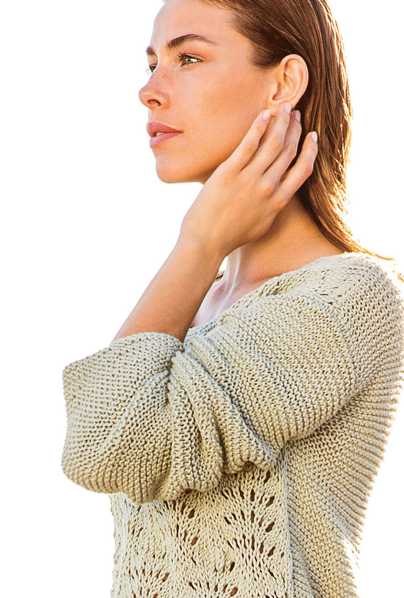 500 (550) g of Lana Grossa Organico (100% organic cotton; 90 m/50 g) in Reed (col 89). Size 4 mm needles; size 4 mm circular needle, 60 cm long