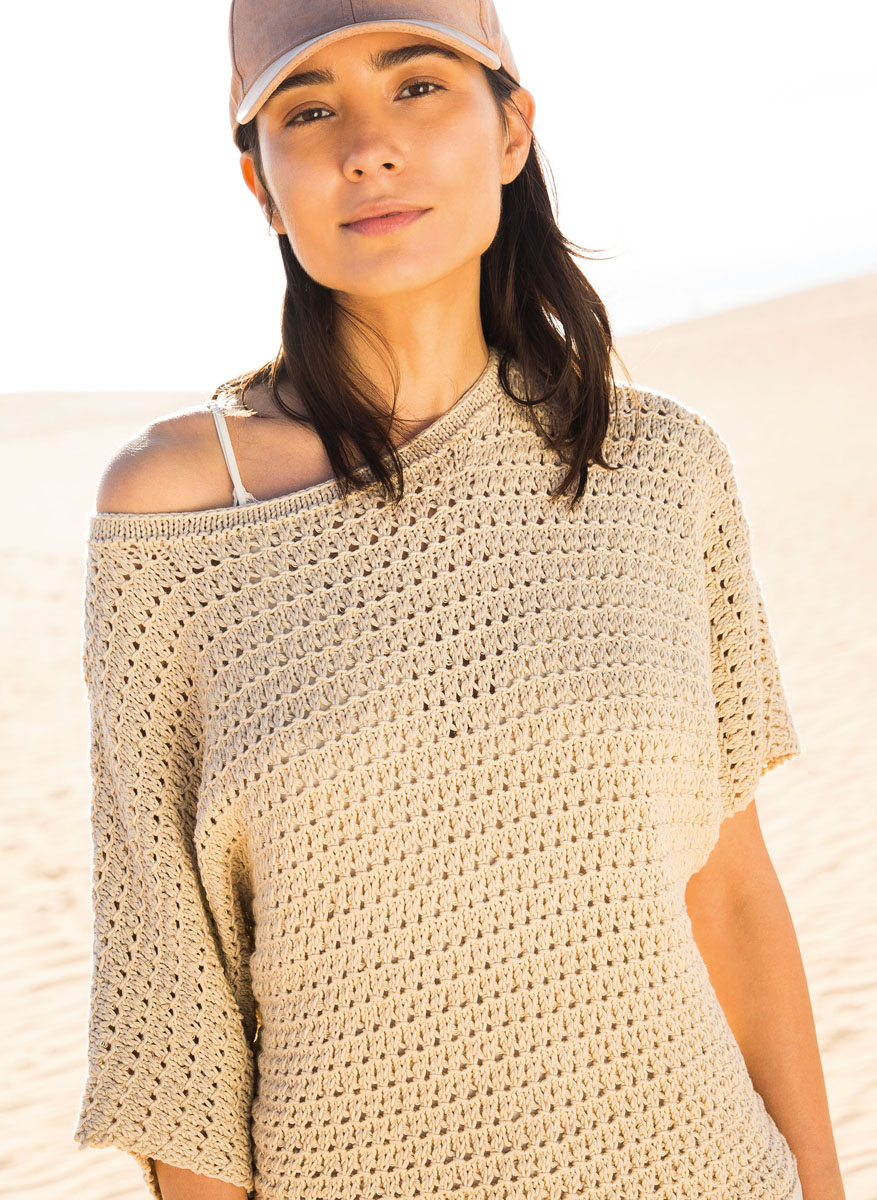 450 (500, 550) g of Lana Grossa Organico (100% organic cotton; 90 m/50 g) in Beige (col 100). Size 5 and 5.5 mm needles; size 5.5 mm circular needle, 80 cm long; size 4.5 mm circular needle, 50 cm long