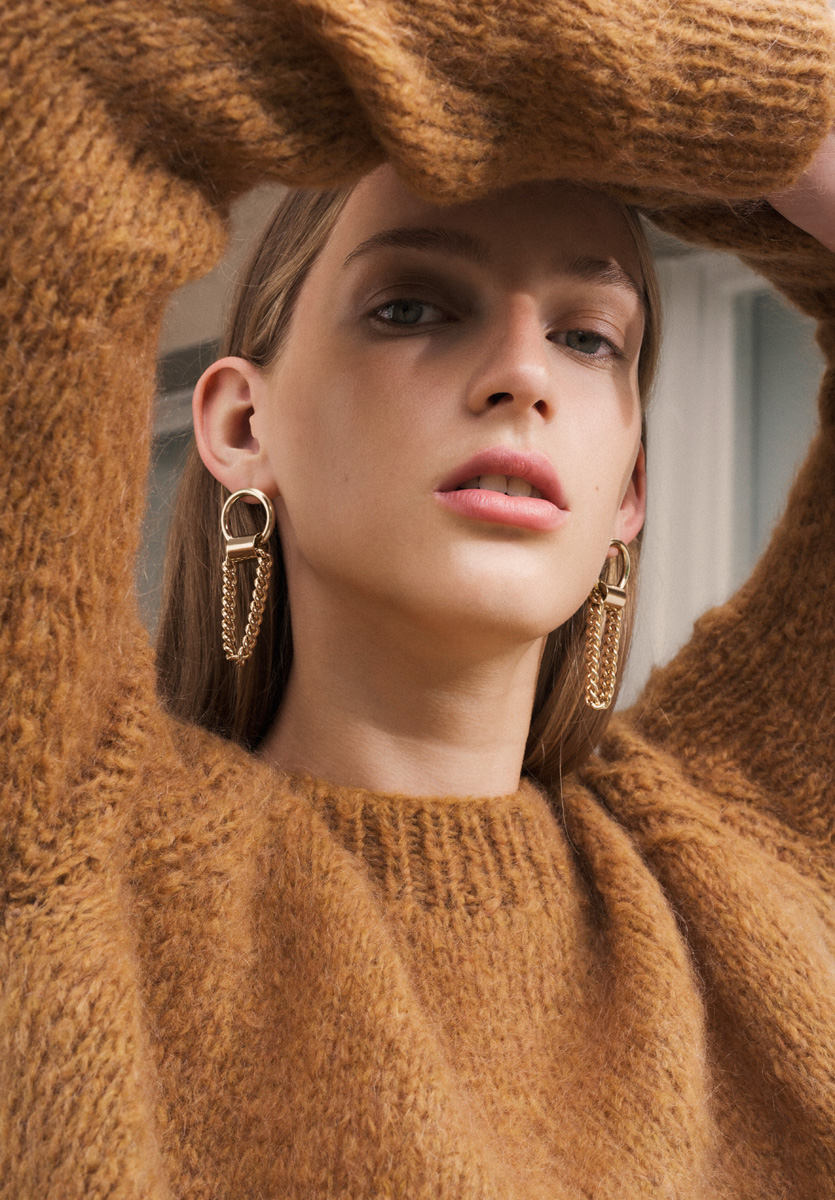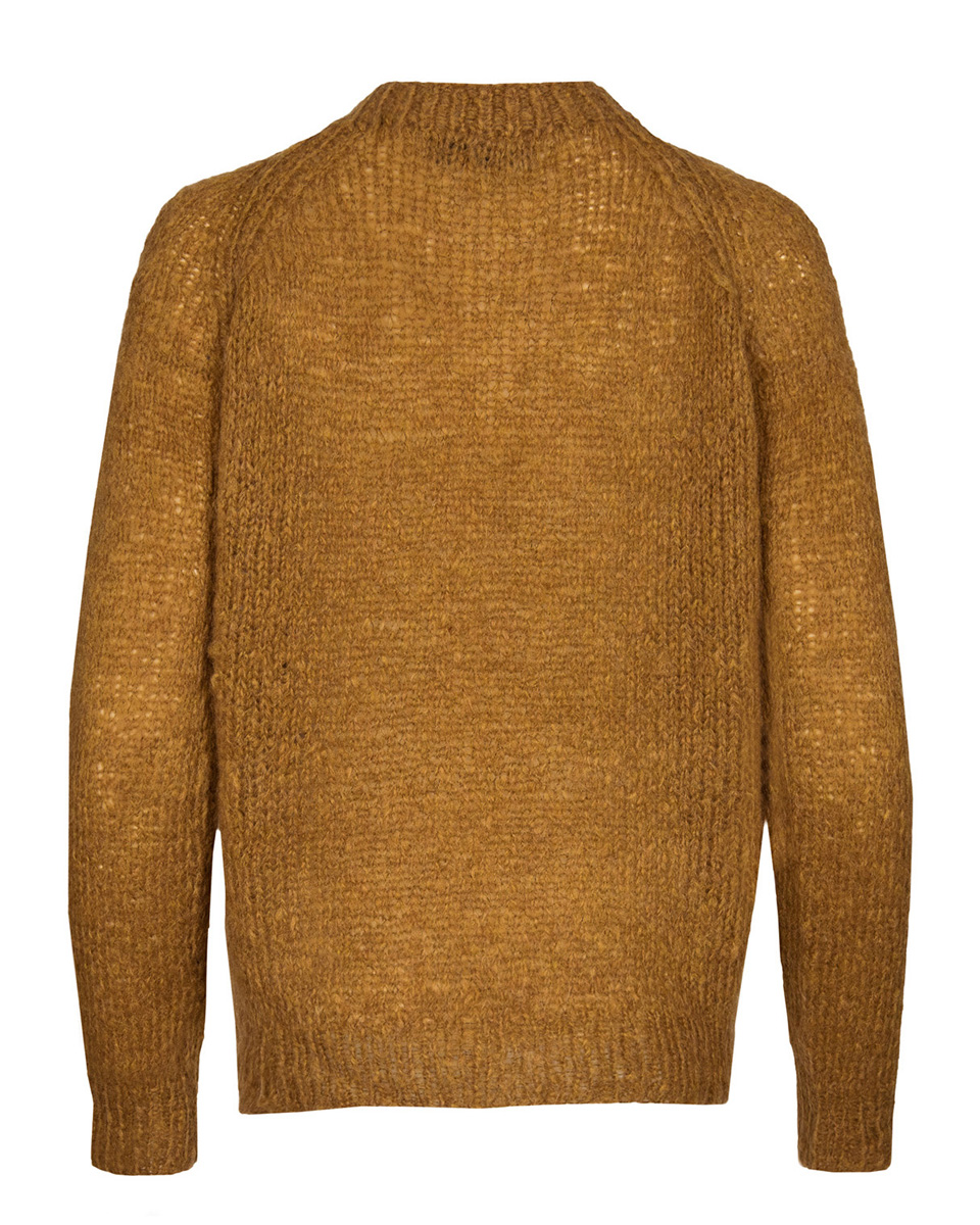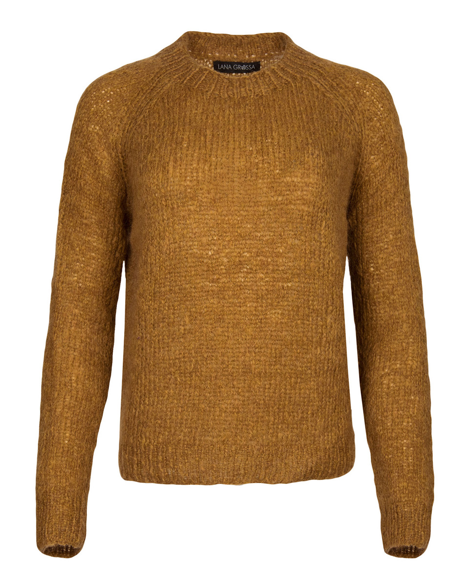 200 (250, 300) g of Lana Grossa Peloso (54 % pure wool, 26 % mohair, 20 % acrylic; 210 m / 50 g) in Gold-Brown (col 7). Size 3.5 and 5 mm needles; size 3.5 mm circular needle, 40 cm long