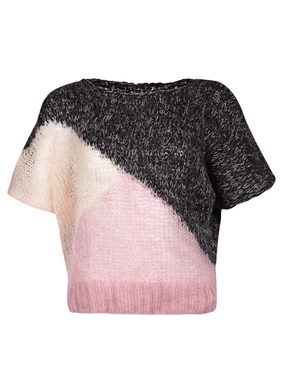 75 (100, 100) g of Lana Grossa Silkhair (70 % superkid mohair, 30 % silk; 210 m / 25 g) in Pink (col 85) and 25 (50, 50) g in Pale Pink (col 93) and 50 (100, 150) g of Lana Grossa Peloso (54 % pure wool, 26 % mohair, 20 % acrylic; 210 m / 50 g) in Charcoal (col 10), knitting needles size 4 and 8