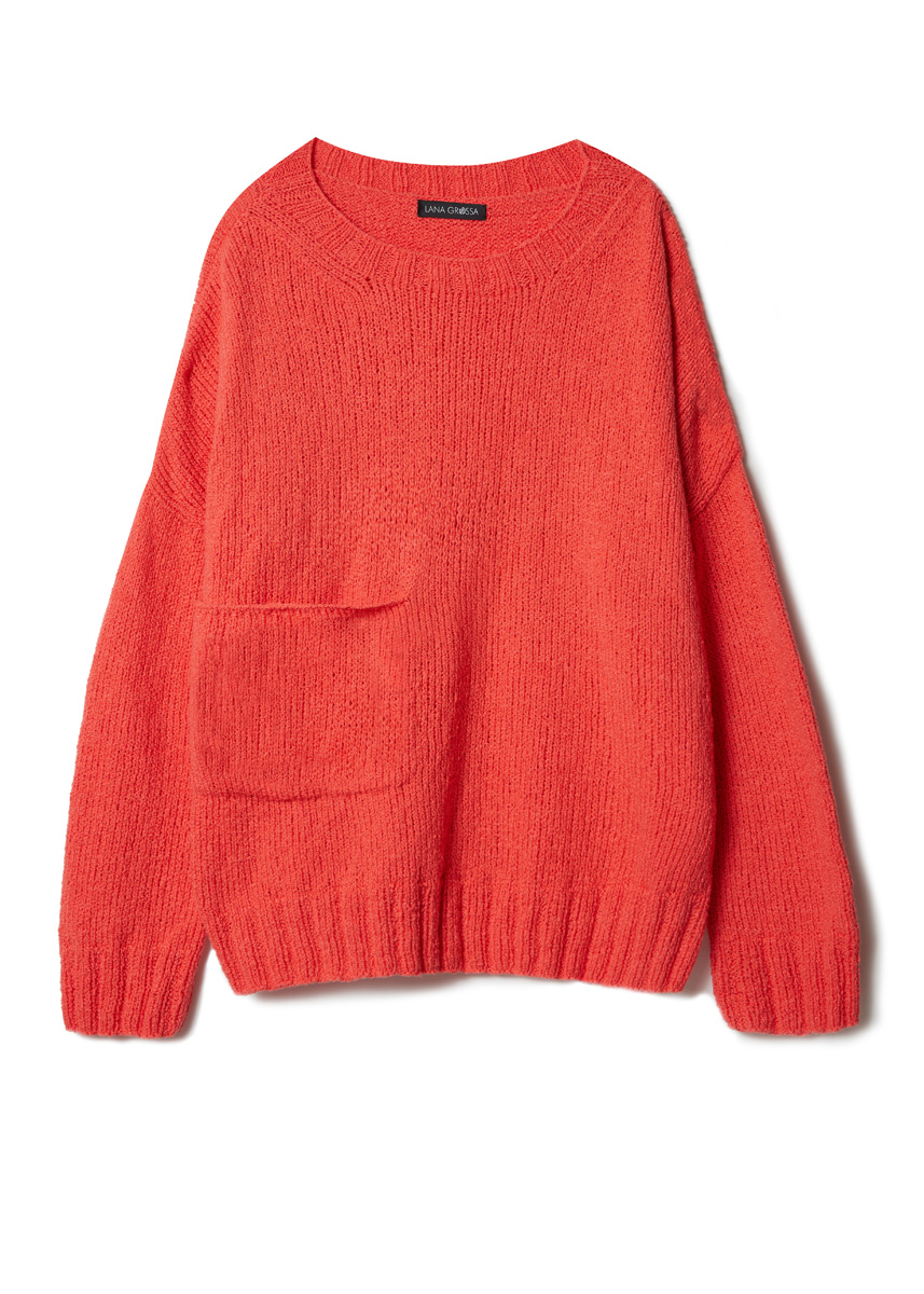 500 (550, 600, 650) g of Lana Grossa Riccio (84% cotton, 16% polyamide; 110 m/50 g) in Coral (col 12). Size 4 and 6 mm needles; short size 4 mm circular needle