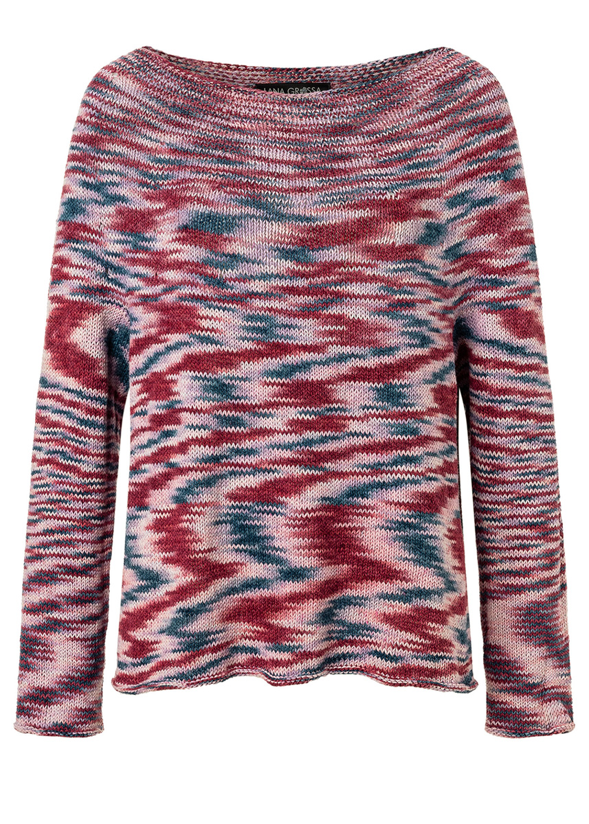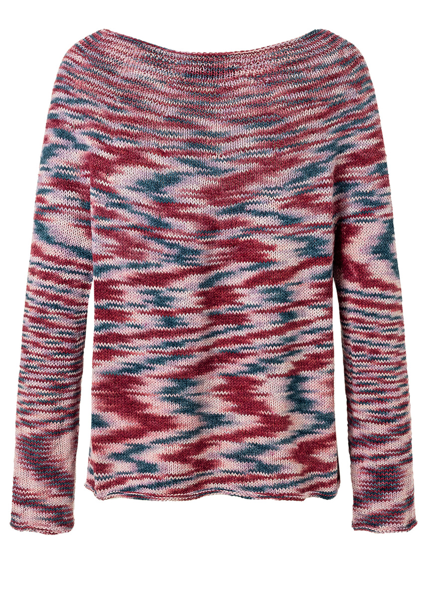 300 (400, 400) g of Lana Grossa Setacotone hand-dyed (50% silk, 50% cotton; 340 m/100 g) in Dal (col 907). Size 4 mm circular needles, 40, 60 and 80 cm long; one set size 4 mm double-pointed needles [dpns].
