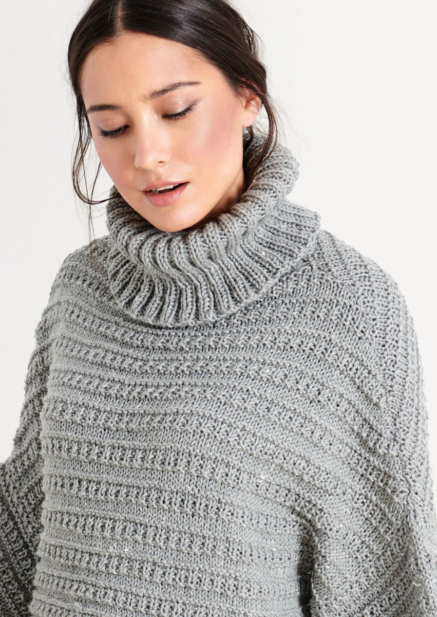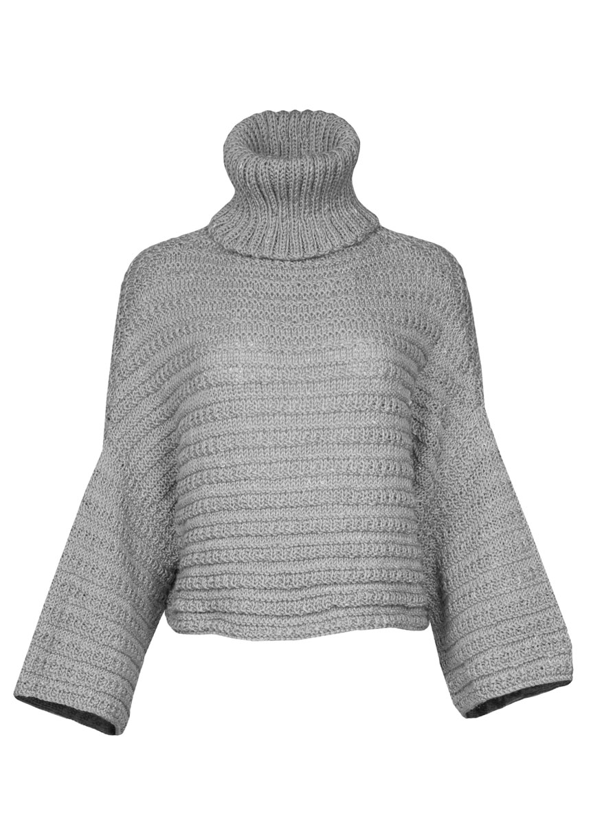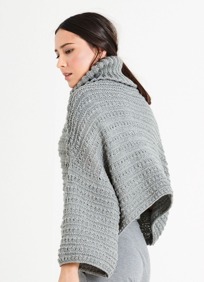 550 (600, 650) g of Lana Grossa Slow Wool Canapa (90% superwash Merino wool, 10% hemp; 100 m/50 g) in Light Grey (col 6). Size 6 mm needles; size 5 and 6 mm circular needles, each 40 cm long