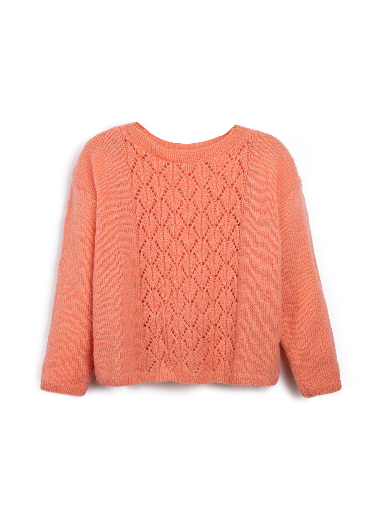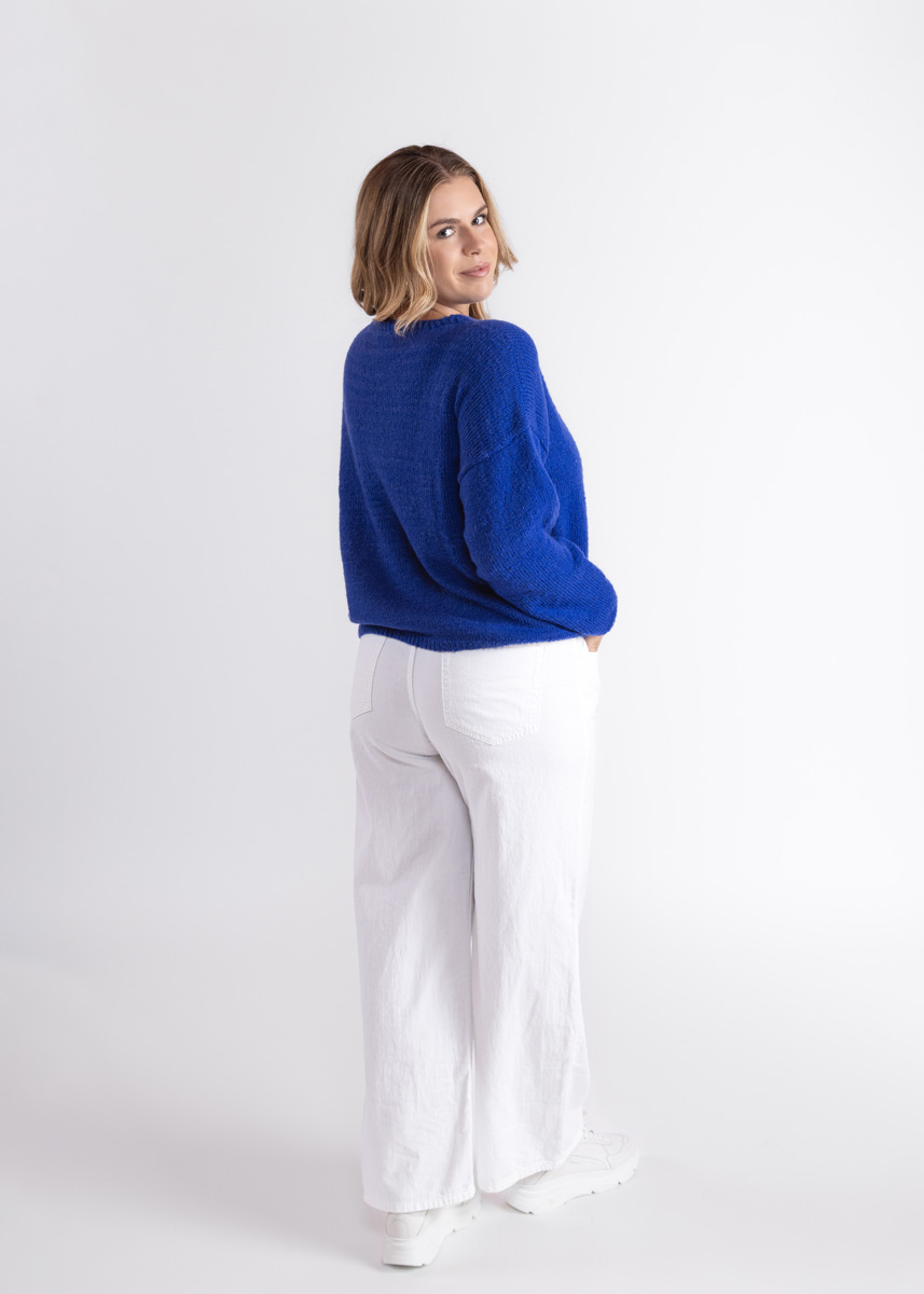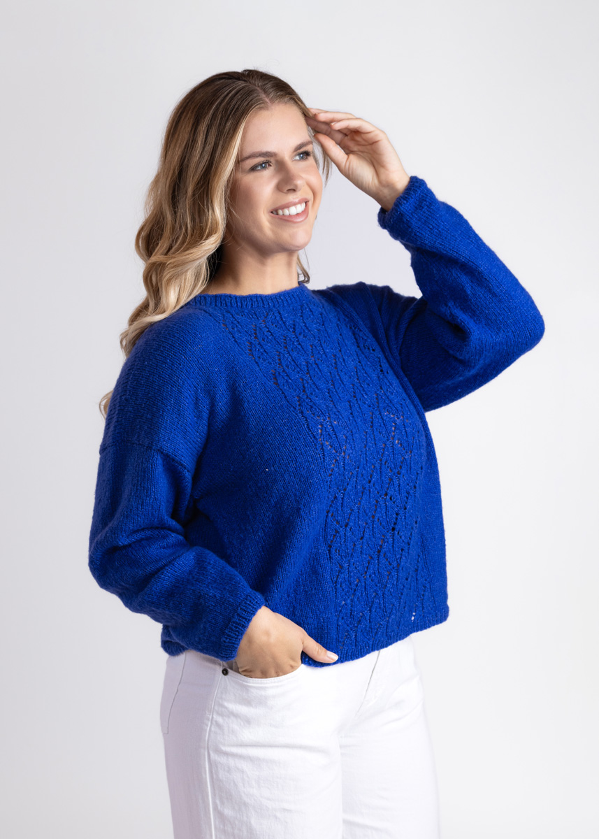 The pullover is knitted throughout with 2 strands of yarn held together. It has a total length of 53 (55 - 57 - 59 - 61 - 63) cm and a positive ease of 22 cm at 80 cm bust circumference (18 cm at 88 cm bust circumference - 14 cm at 96 cm bust circumference - 14 cm at 104 cm bust circumference - 10 cm at 116 cm bust circumference - 10 cm at 128 cm bust circumference).