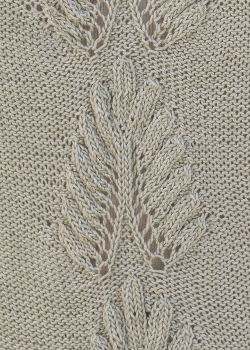 500 (550, 600) g of Lana Grossa Solo Lino (80% recycled linen (viscose), 20% linen; 120 m/50 g) in Light Grey (col 5). Size 3 and 4 mm needles; size 4 mm circular needle, 80 cm long