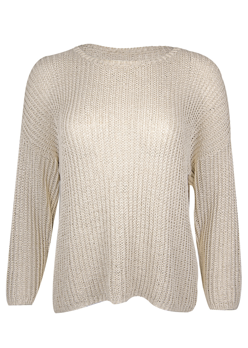 550 (600, 650) g of Lana Grossa Solo Lino (80% recycled linen [viscose], 20% linen; 120 m/50 g) in Greige (col 2). Size 3 and 4 mm needles; size 3 mm circular needle, 50 cm long
