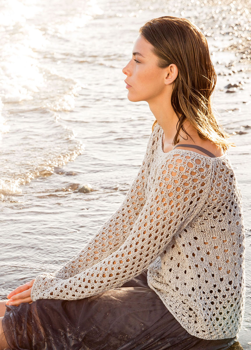 450 (500) g of Lana Grossa Solo Lino Mélange (80% recycled linen (viscose), 20% linen; 105 m/50 g) in Light Grey Melange (col 102). Size 4.5 mm needles; size 4 mm crochet hook