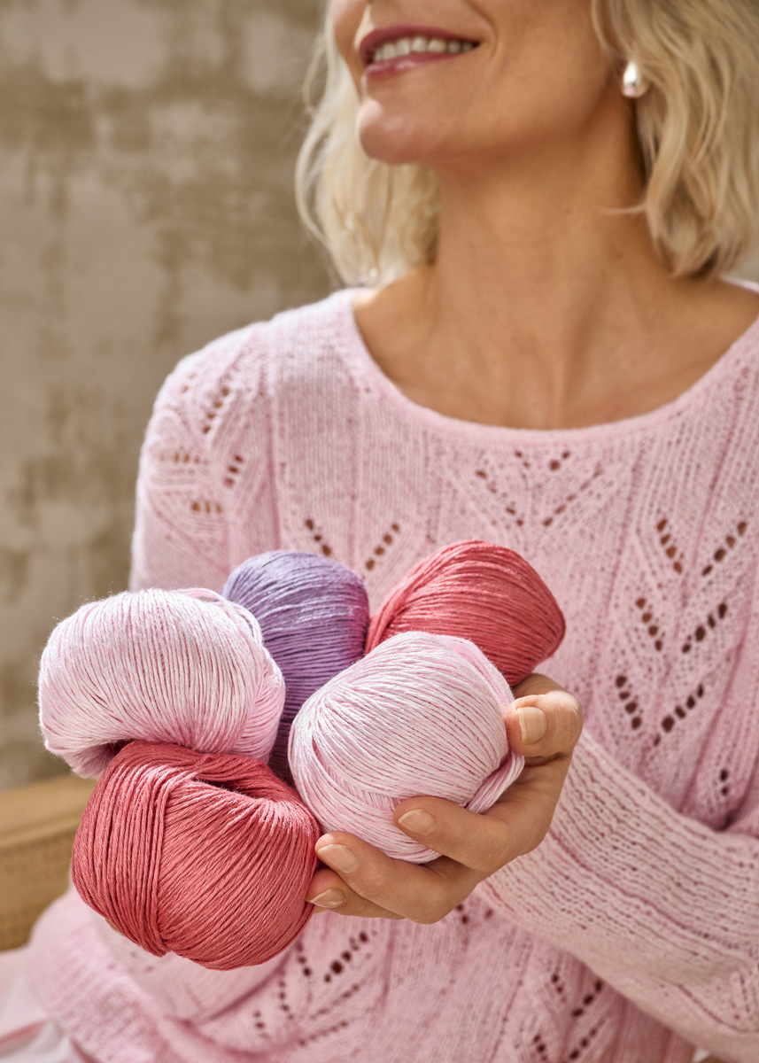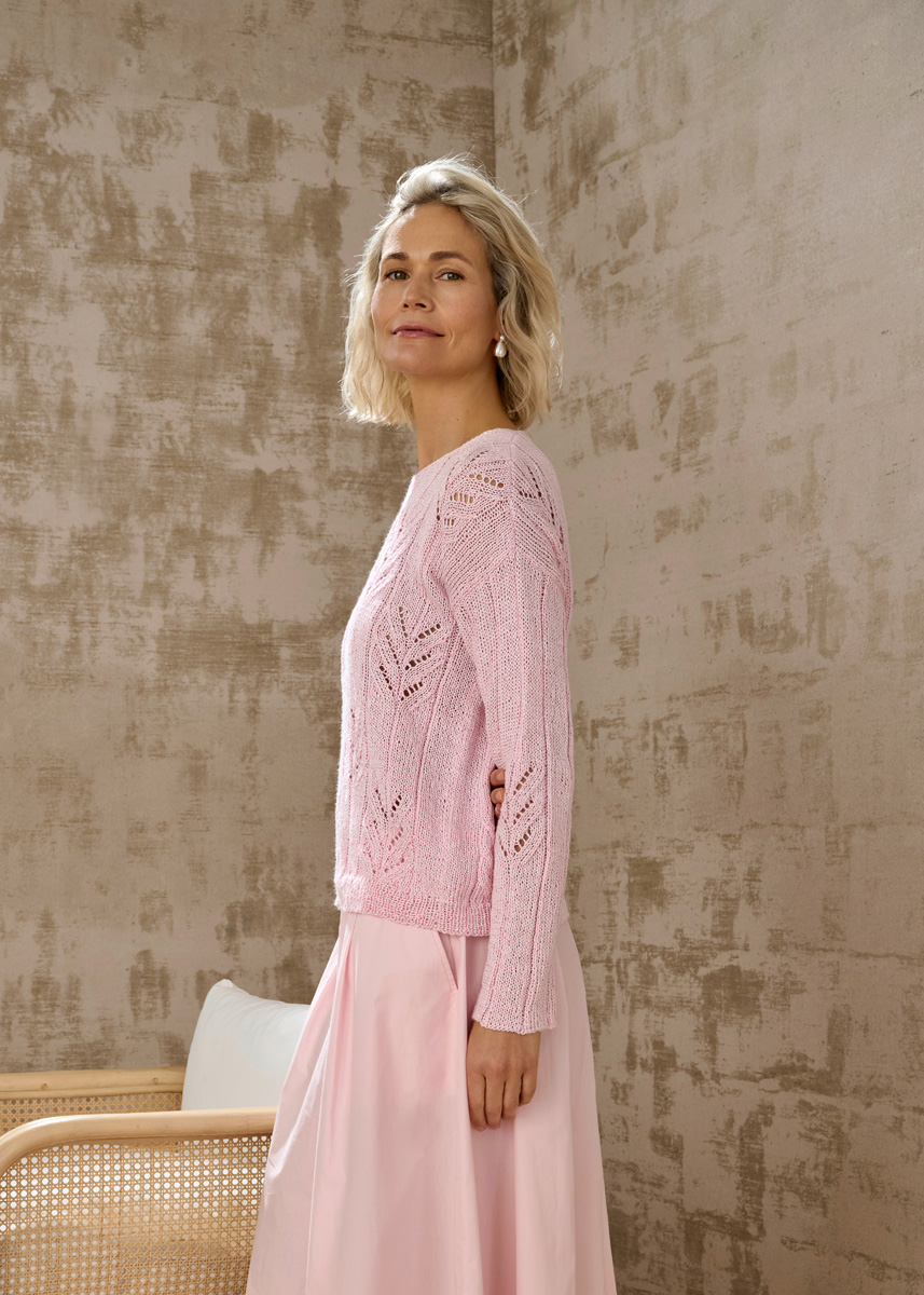 Lana Grossa Tencellino (51 % Linen, 49 % Tencel, approx. 125 m/50 g), 500 (550 - 600) g rose (col 13); knitting needles no. 3,5 and 4; circular knitting needle no. 4, 40 cm long.