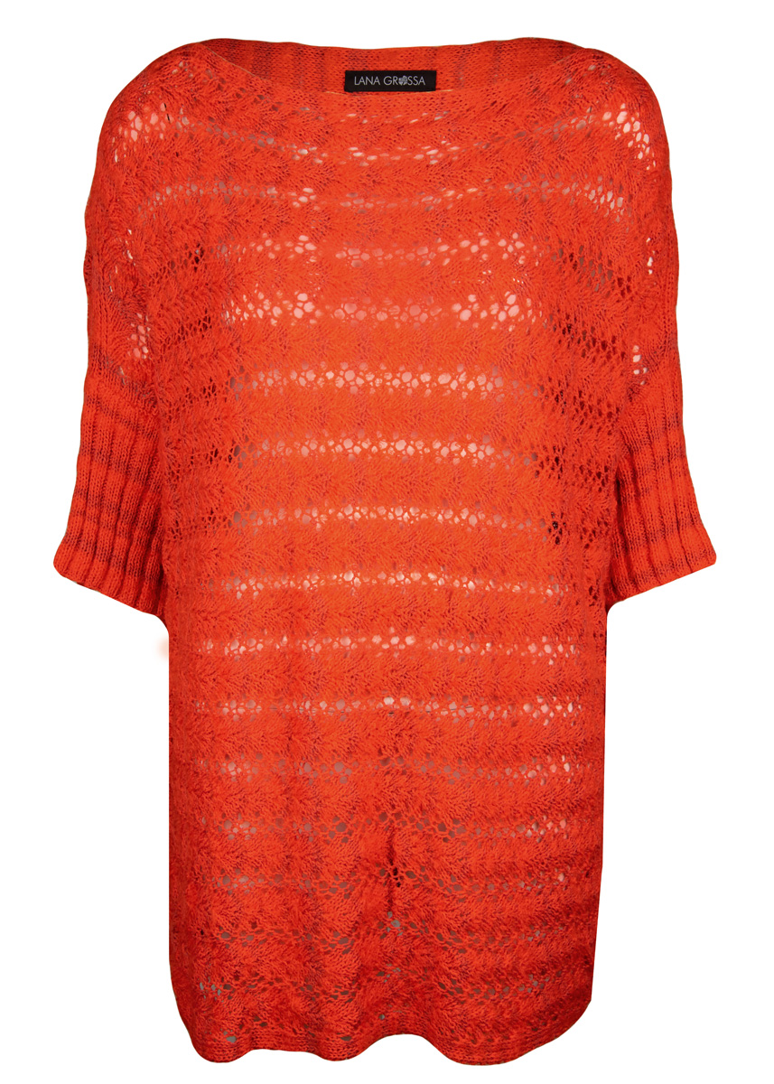 450 g of Lana Grossa Trefili (62% cotton, 26% viscose, 12% linen; 160 m/50 g) in Orange/Coral (col 5). Size 4 mm circular needle, 80 cm long; size 3 mm needles