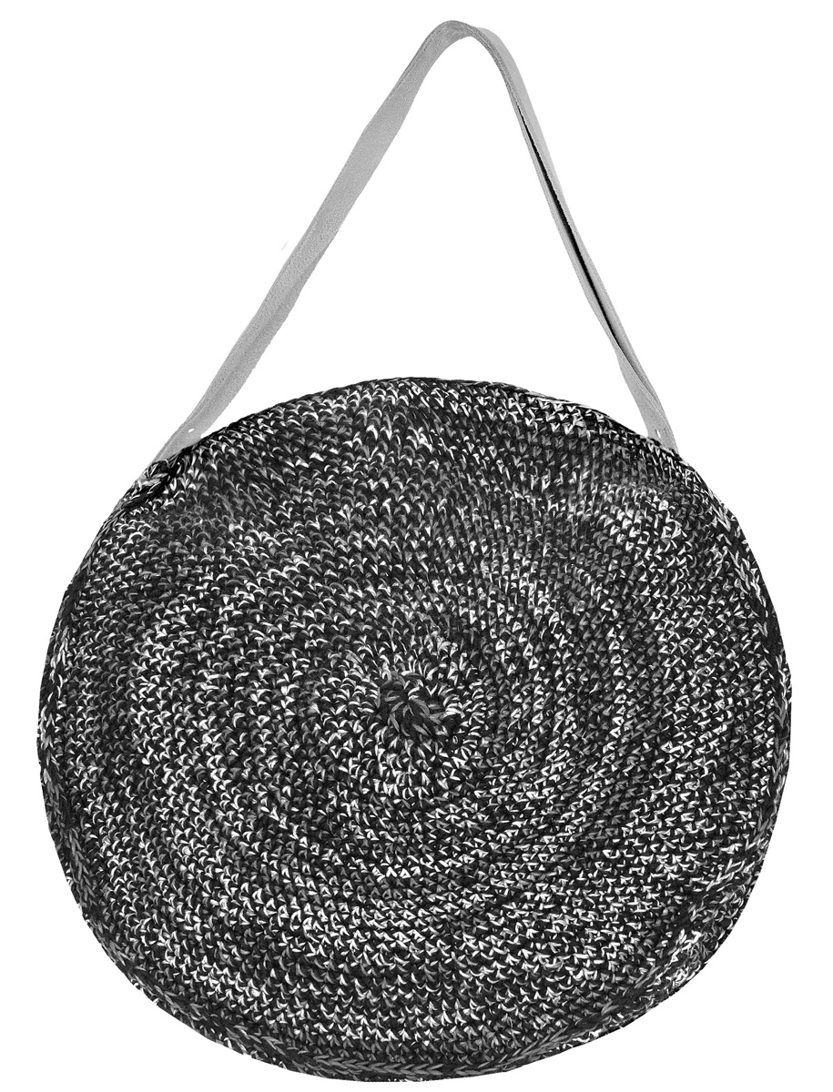 300 g of Lana Grossa Organico (100% organic cotton; 90 m/50 g) in Black (col 14) and 200 g of Lana Grossa Pappagallo (50% cotton, 50% microfiber; 340 m/100 g) in Red/Petrol/Yellow-Green/Pink/Emerald/Fuchsia (col 6). Size 5 mm crochet hook; two 2 cm x 120 cm leather handles; four book binding screws; one magnetic closure