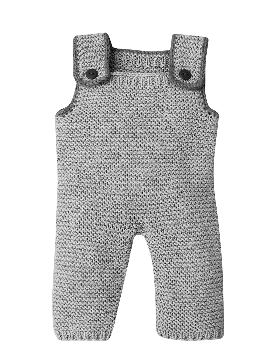 100 g of Lana Grossa Soft Cotton (70% cotton, 30% microfiber; 140 m/50 g) in Green/Grey (col 4) and 50 g in Violet (col 15). Size 3.5 mm circular needle, 40 cm long; one set size 3.5 mm double-pointed needles [dpns]; size 3 mm crochet hook; two 15 mm buttons