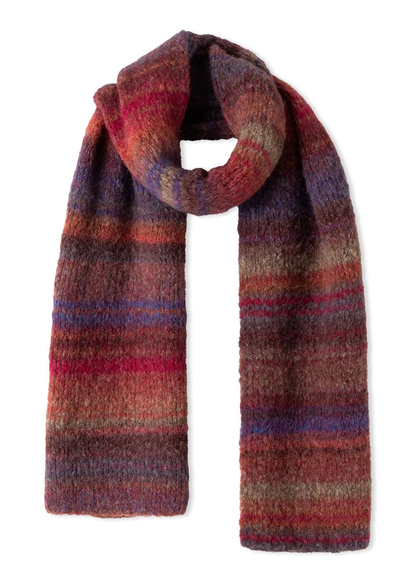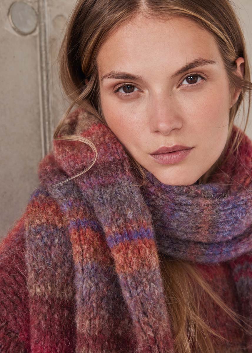Lana Grossa Gigante Multi (70 % Alpaca, 30 % Polyamide, approx. 150 m/50 g), 450 (500) g wine red/red brown/gray red/eggplant/khaki/gray brown (col 103); 1 circular knitting needle size 5,5 mm, 80 cm long