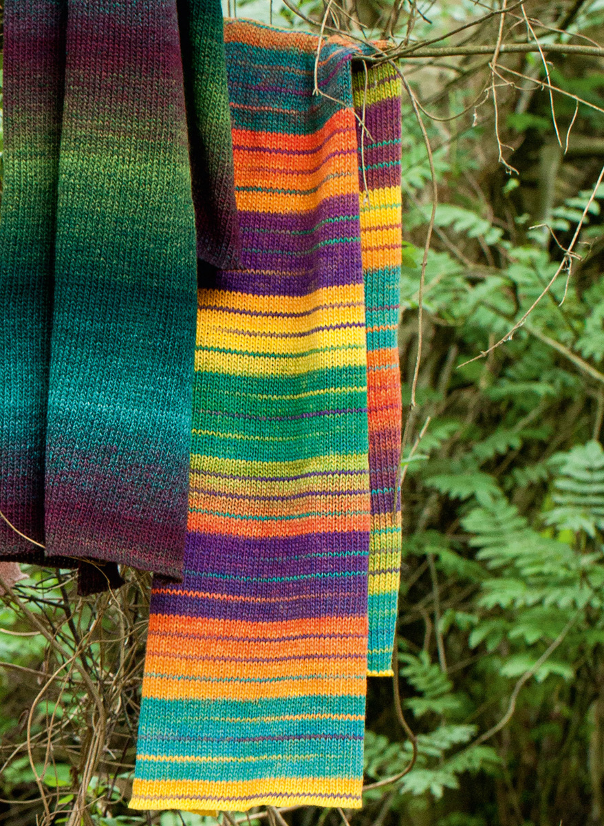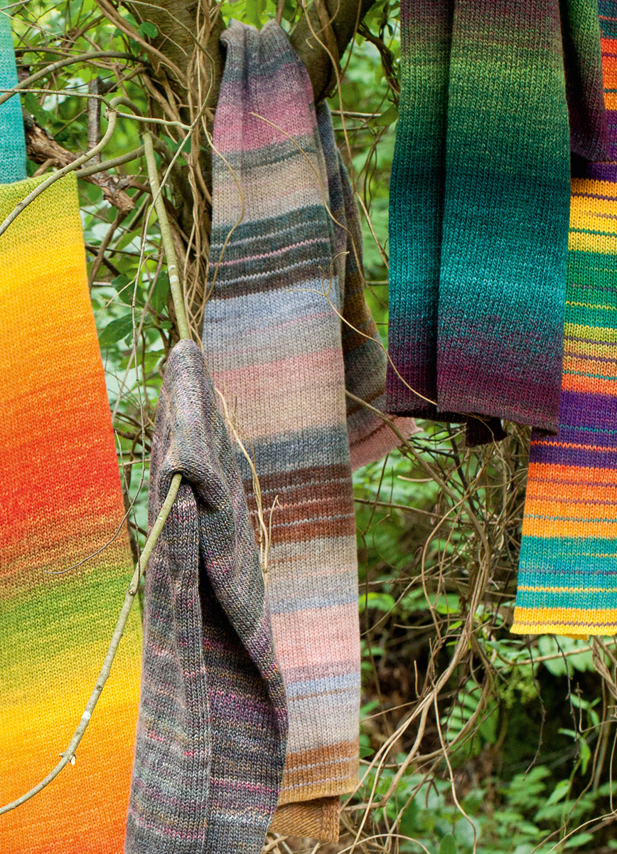 200 g of Lana Grossa Gomitolo Molto (60% Merino wool, 40% acrylic; 700 m/200 g) in Orange/Purple/ Petrol/Rose/Yellow/Pink (col 602) or in Red Brown/Grey/Salmon/Charcoal/ Pink/Petrol (col 609) or in Orange/Petrol/Red/ Red Violet/Yellow/Green (col 605). Size 4.5 mm needles