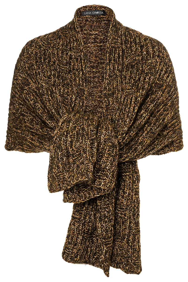 250 g each of Lana Grossa Puno Due (63% cotton, 37% baby alpaca; 210 m/50 g) in Nougat/Black Brown (col 6) and Pale Yellow/Camel (col 7). Size 7 mm needles