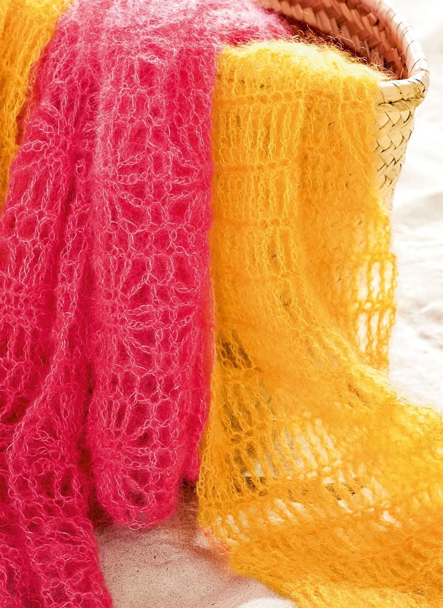 50 g of Lana Grossa Silkhair (70% superkid mohair, 30% silk; 210 m/25 g) in Raspberry (col 70). Size 5 mm crochet