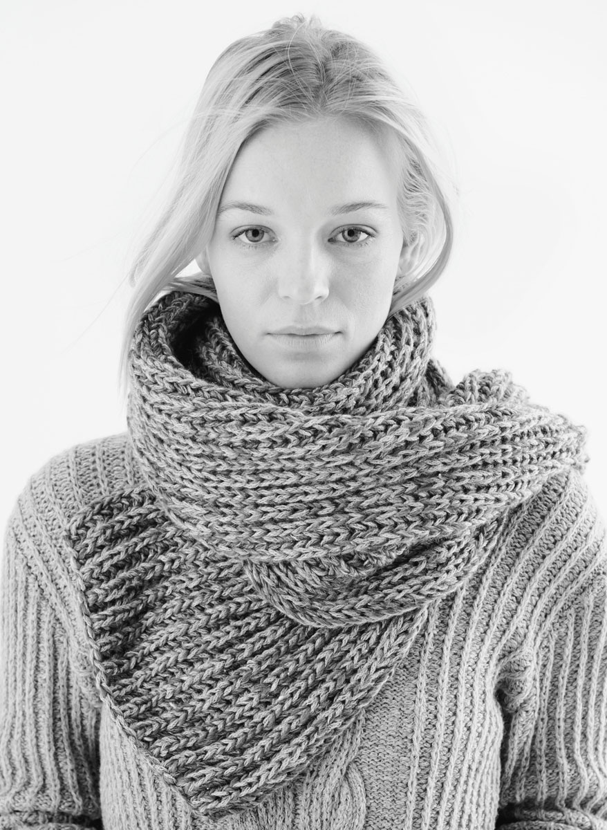 150 g of Lana Grossa Smokey (46% Merino wool, 41% cotton, 8% polyamide, 5% yak; 225 m/50 g) in Pastel Petrol/Light Grey (col 212) and 200 g of Lana Grossa Only Tweed (76% superwash Merino wool, 16% acrylic, 5% silk, 3% viscose; 135 m/50 g) in Petrol/Black-Green/Dark-/Light Grey (col 112). Size 7.5 mm needles