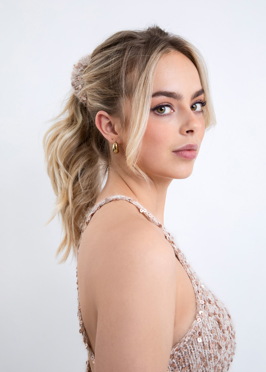 While Per Fortuna provides structure and stability, Cosmo adds a fine, shimmering accent - perfect for giving your hairstyle that special something. Whether worn as a stylish detail in your hair or as a fashionable accessory on your wrist, this scrunchie is versatile and an elegant companion for everyday wear.